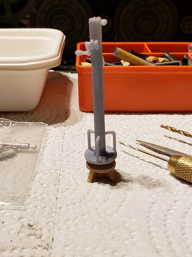 Drilling out a hole in the bottom of the flexible resin shaft.. I mounted a hex head screw to attach to the tubing in the base.jpg