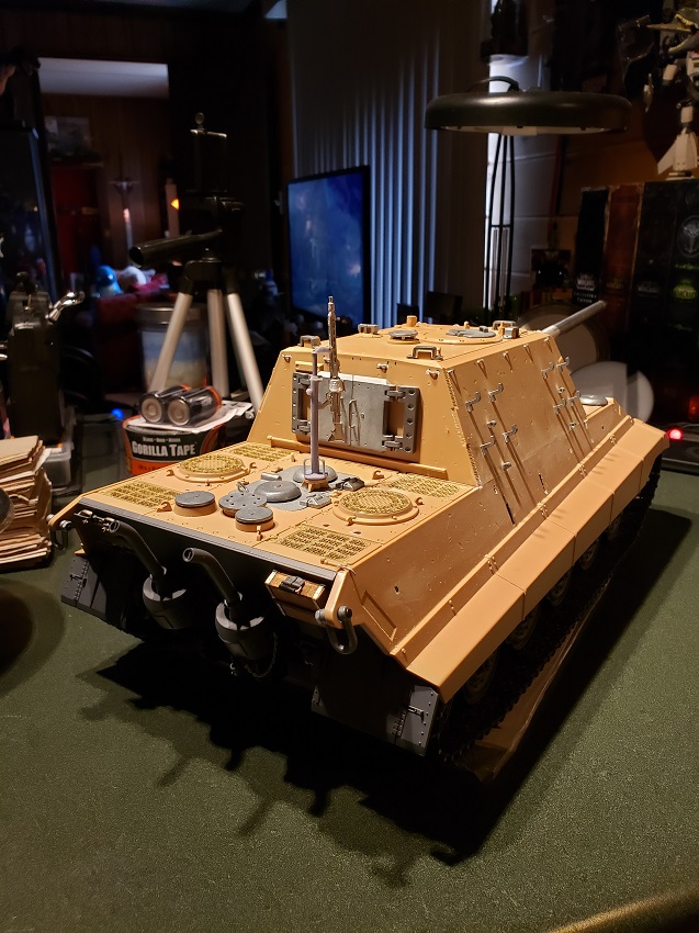I have been following your Taigen Jagdtiger detailing from its outset at Christmastime. That's all GRRREAT! by me. The barrel travel lock and the moveable MG42 mount are such fine re-builds you have made.