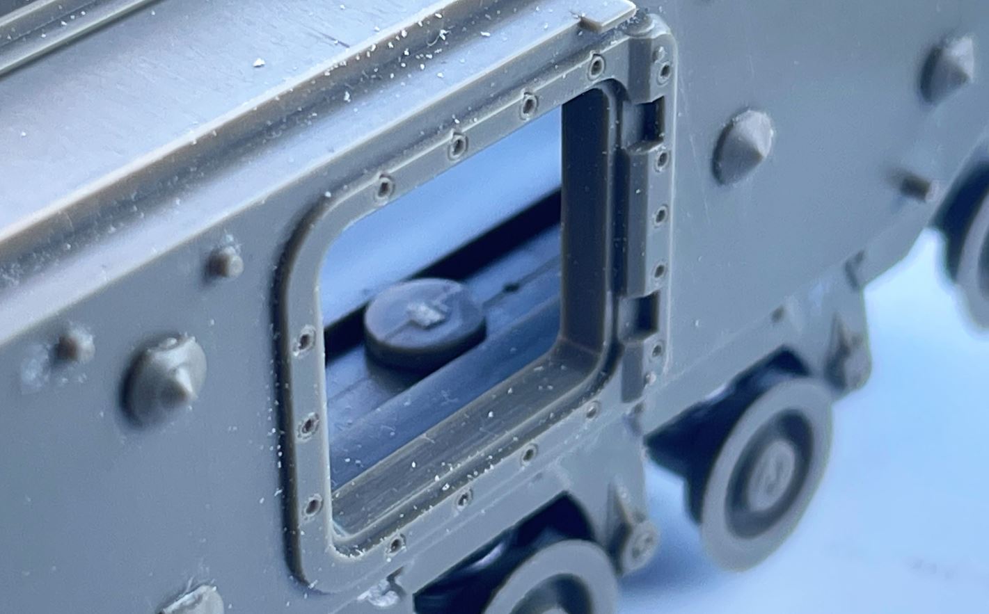The AFV Club 1/35 kit provides good details to reproduce, including the bolt head types on the frame and door hinges.