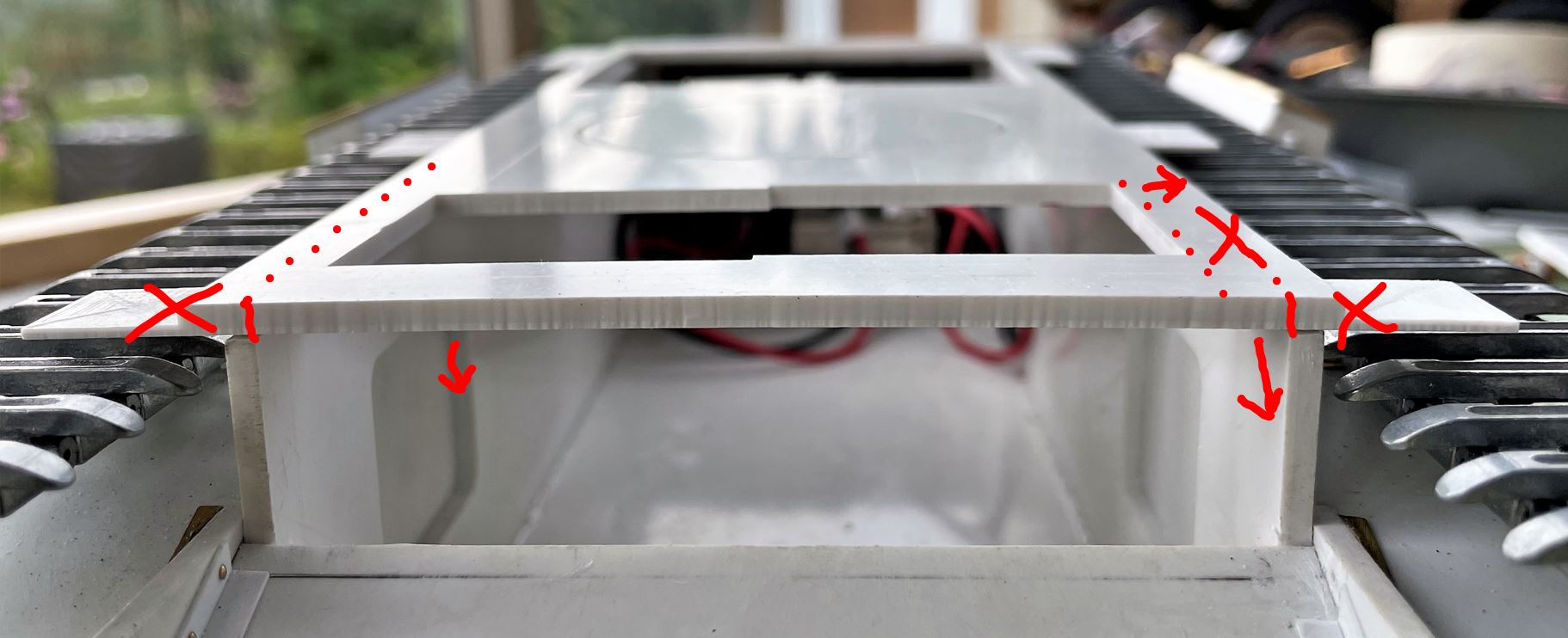 I calculated that the front of the side armor just before the machine gun need to be brought back by about 2mm as it is too far upfront.