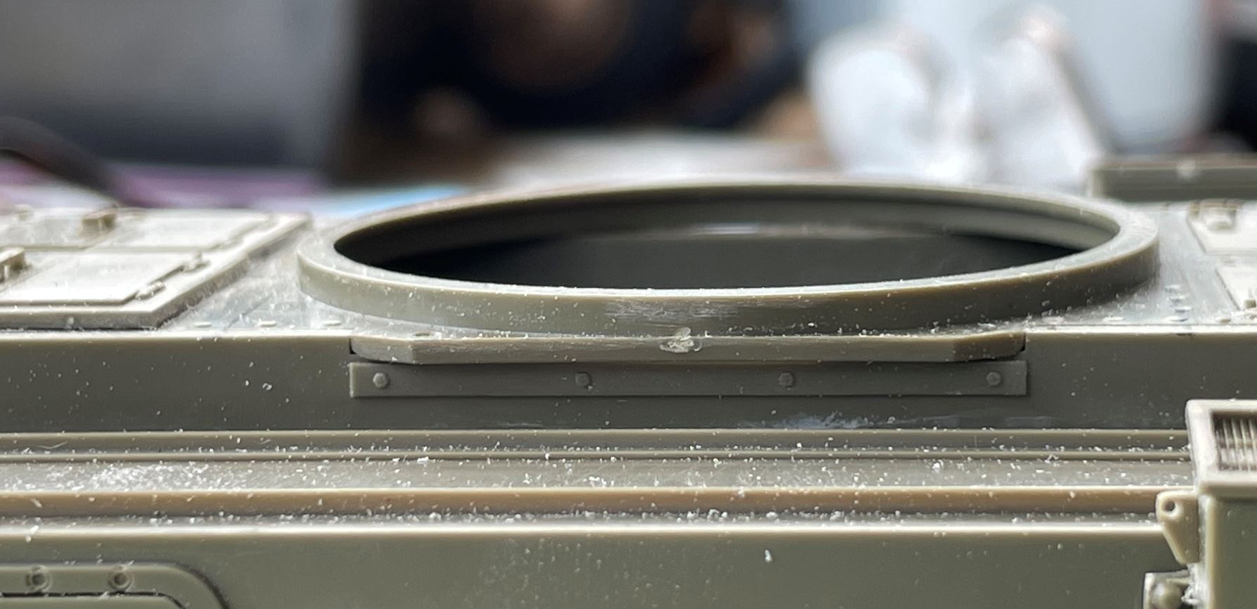Switching to the turret ring area. View of the AFV Club kit. Notice the size and thickness of the ring. There is also a plate that protrude to sides.