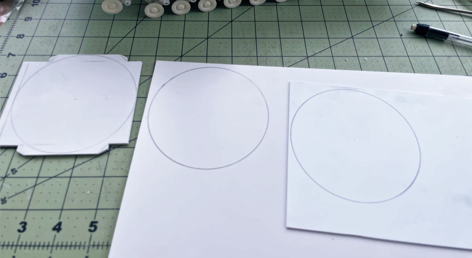 Rings of proper dimensions are planned, drawn, dimensions verified, double and triple checked. You do not want to do these rings twice. The turret ring needs to be 4.3mm thick so i will use a 3mm and a 1.5mm plasticard glued in overlay with some sanding after.