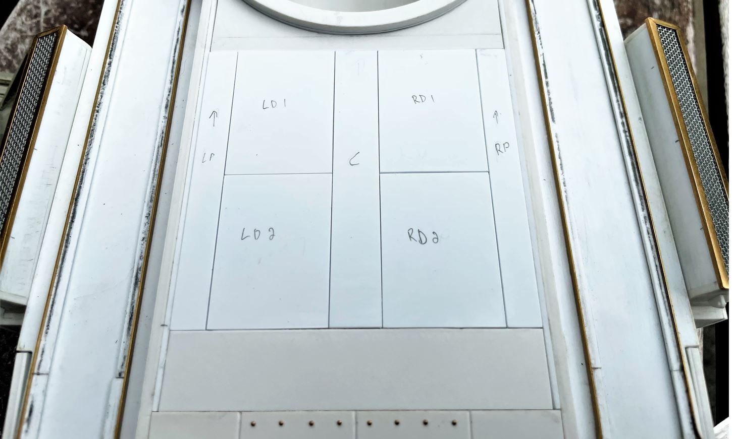 AFV Club kit view of the deck and 4 large hatches over the engine. Dimensions and shapes are extrapolated.