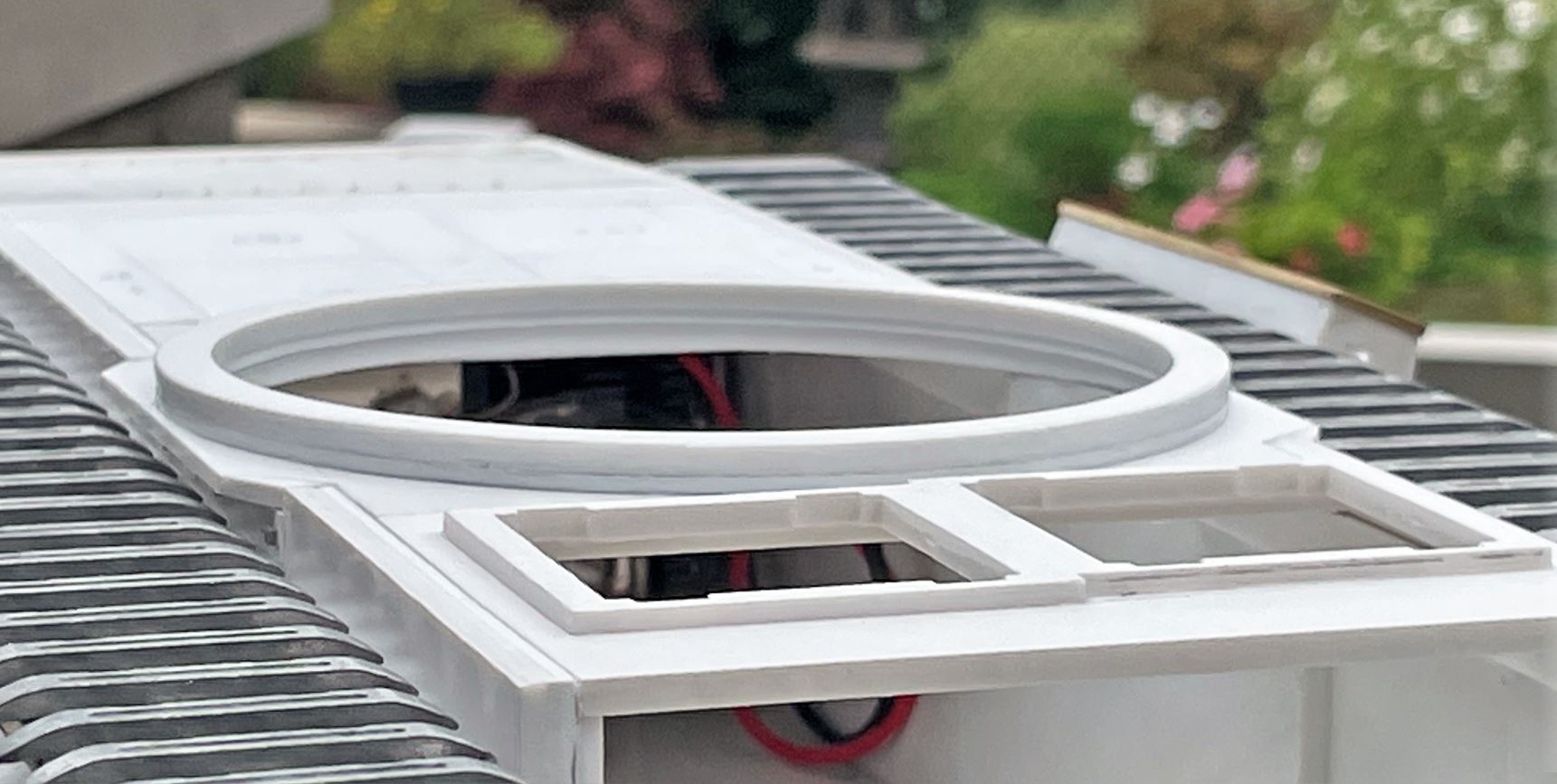View of the AFV Club kit Dieppe air intake, with attachment detail for the grill and also for the deep wading equipment, on option.