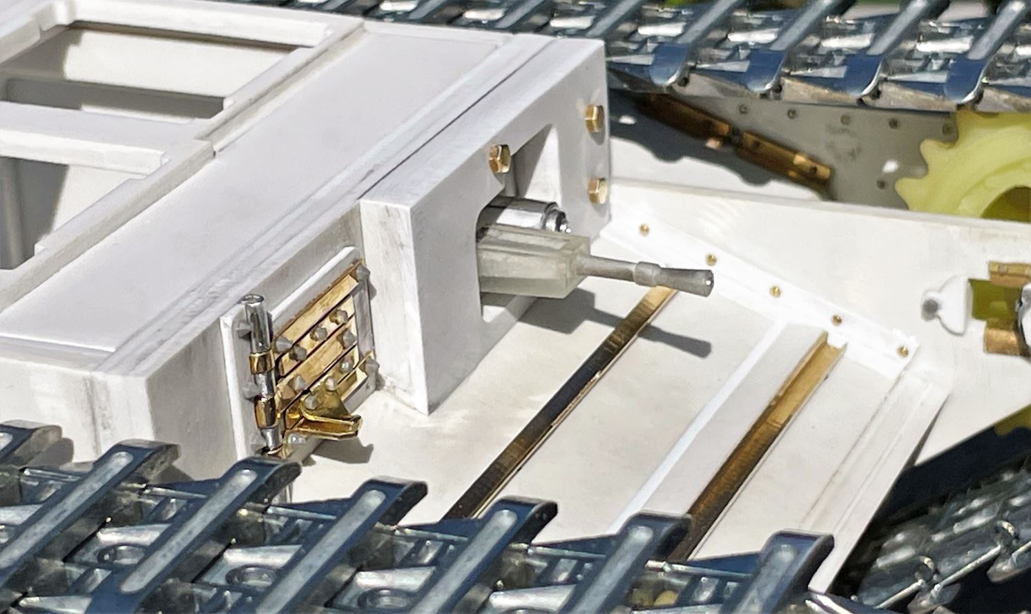 I decided to make the hatch not operable. With such complicated hinge mechanism, it would likely not close properly and would give me a lot of trouble for limited benefits. Maybe if the hatch had been prettier, i would have been inclined to spend more time on it...These hatch were not opened at Dieppe. Parts in brass are created for the hinges.