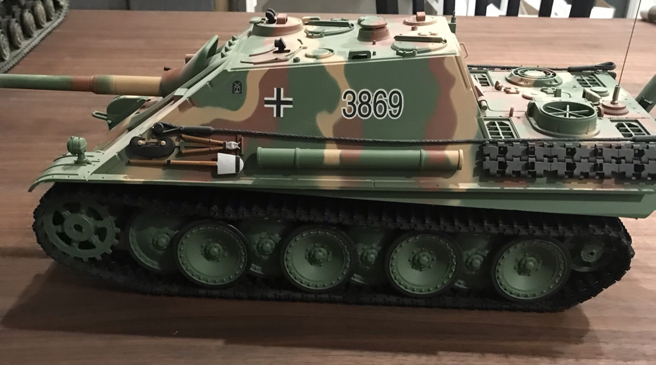 Heng Long, Jagdpanther, 27Mhz, looks like plastic sprockets/idler/tracks.