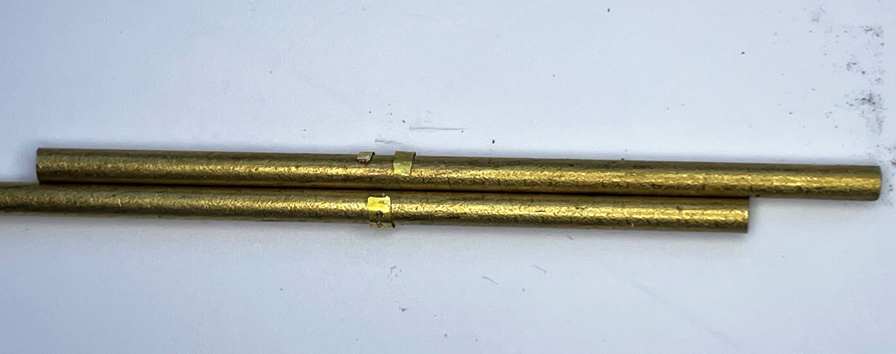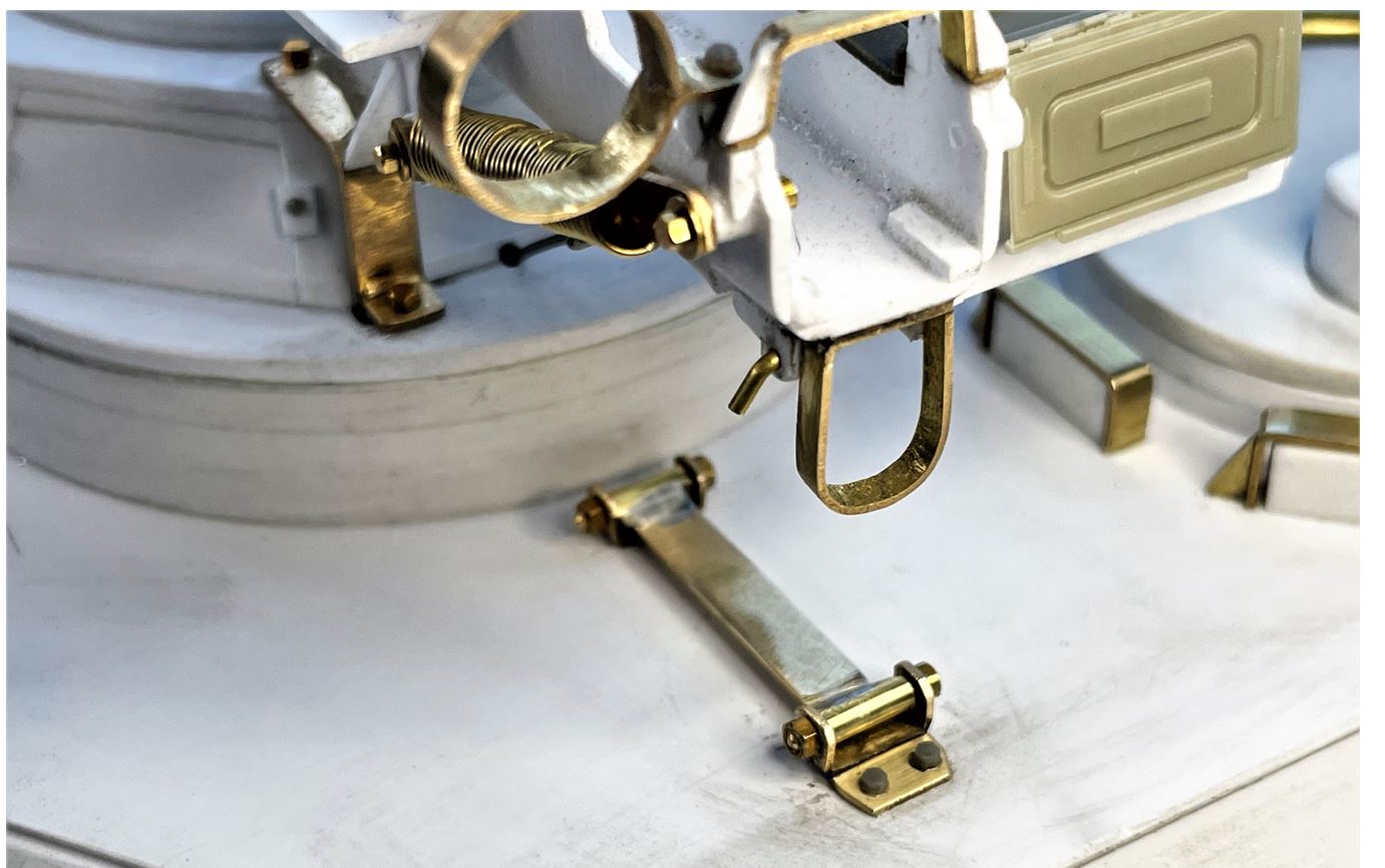 Reproduced in 3mm wide brass strip soldered to brass tubes on both ends, with bolts for the attachments on both sides. It is functional.