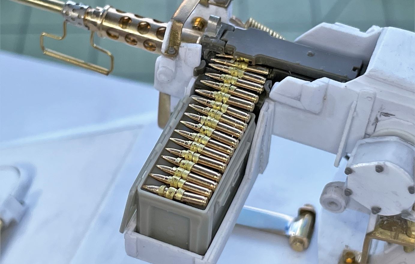 A Browning M2 needs ammo to look really impressive. The Tamiya model is the only one i know that offers the ability to realistically load the ammo into the receiver. Some grinding of the interior is required however to make the 3rd party ammo fit correctly inside.