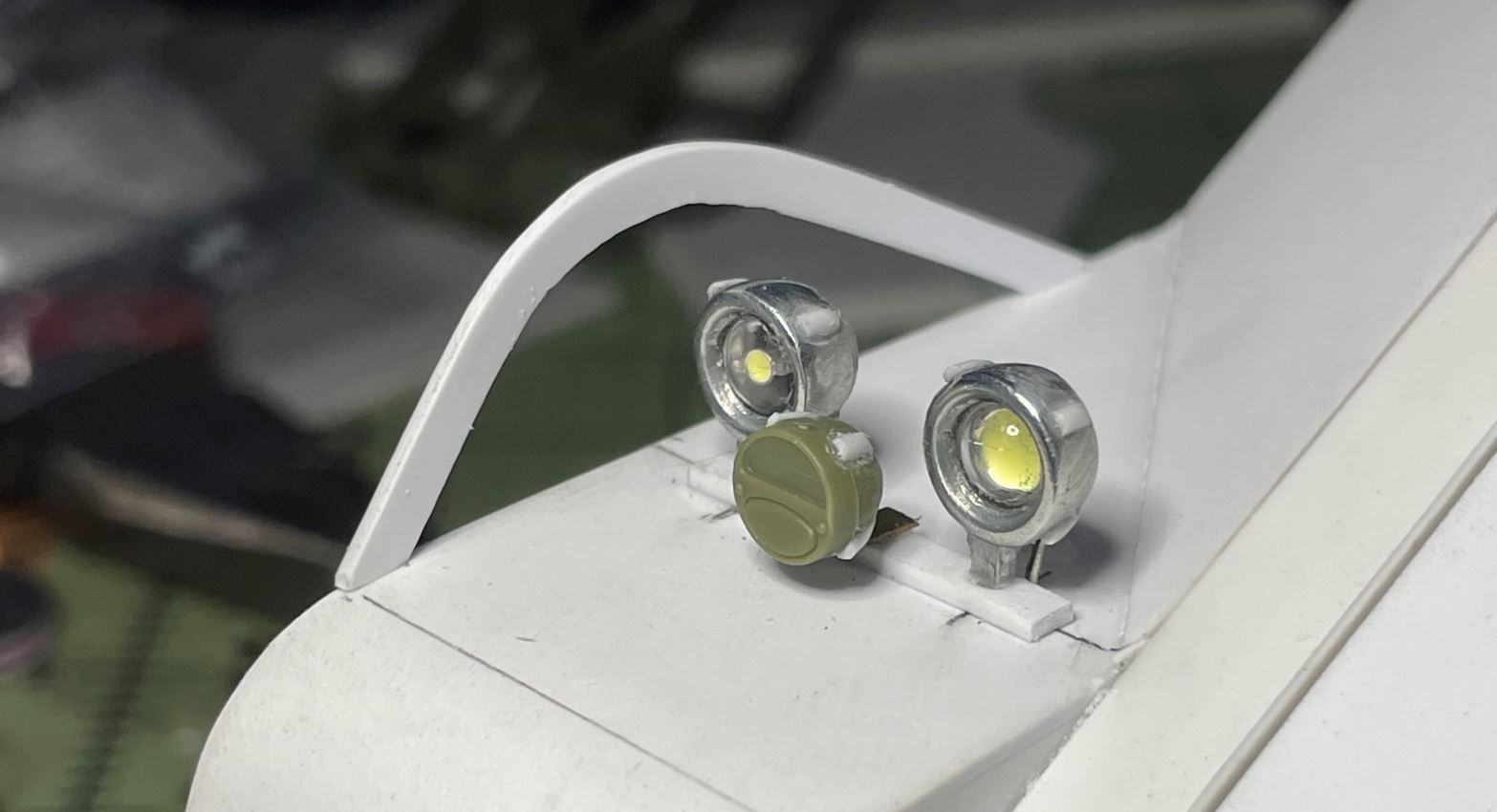 The dimmed light is made non functional with the same plasticard solid rod and installed at the back of the set on the left side where it should be.