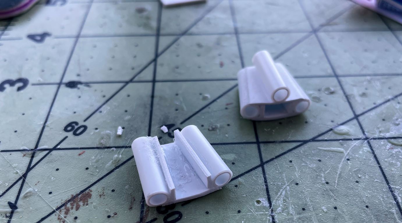 What i thought would take me hours only took 15 minutes to create four stubs. After gluing the add on section, putty is used to fill the gaps, and then everything is polished. Once primed, it should be seamless. A secondary benefit is that light from the LED will not come out from the back.