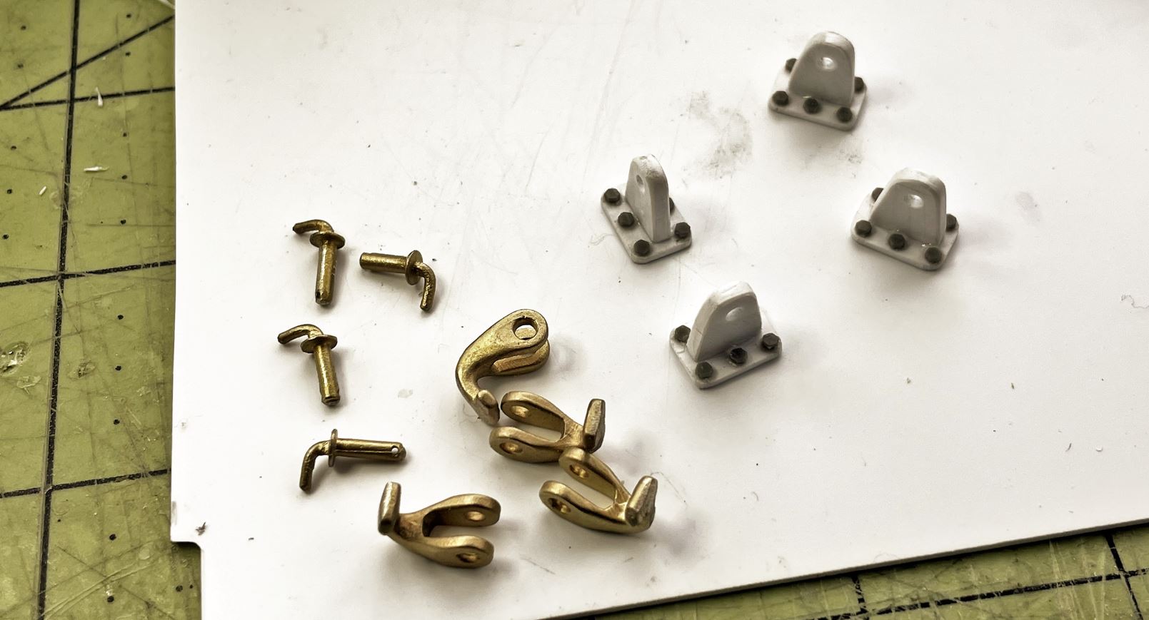 The hinges are using M1x8 brass bolts. They are thoroughly tested for usability and solidity before installation on the hull.
