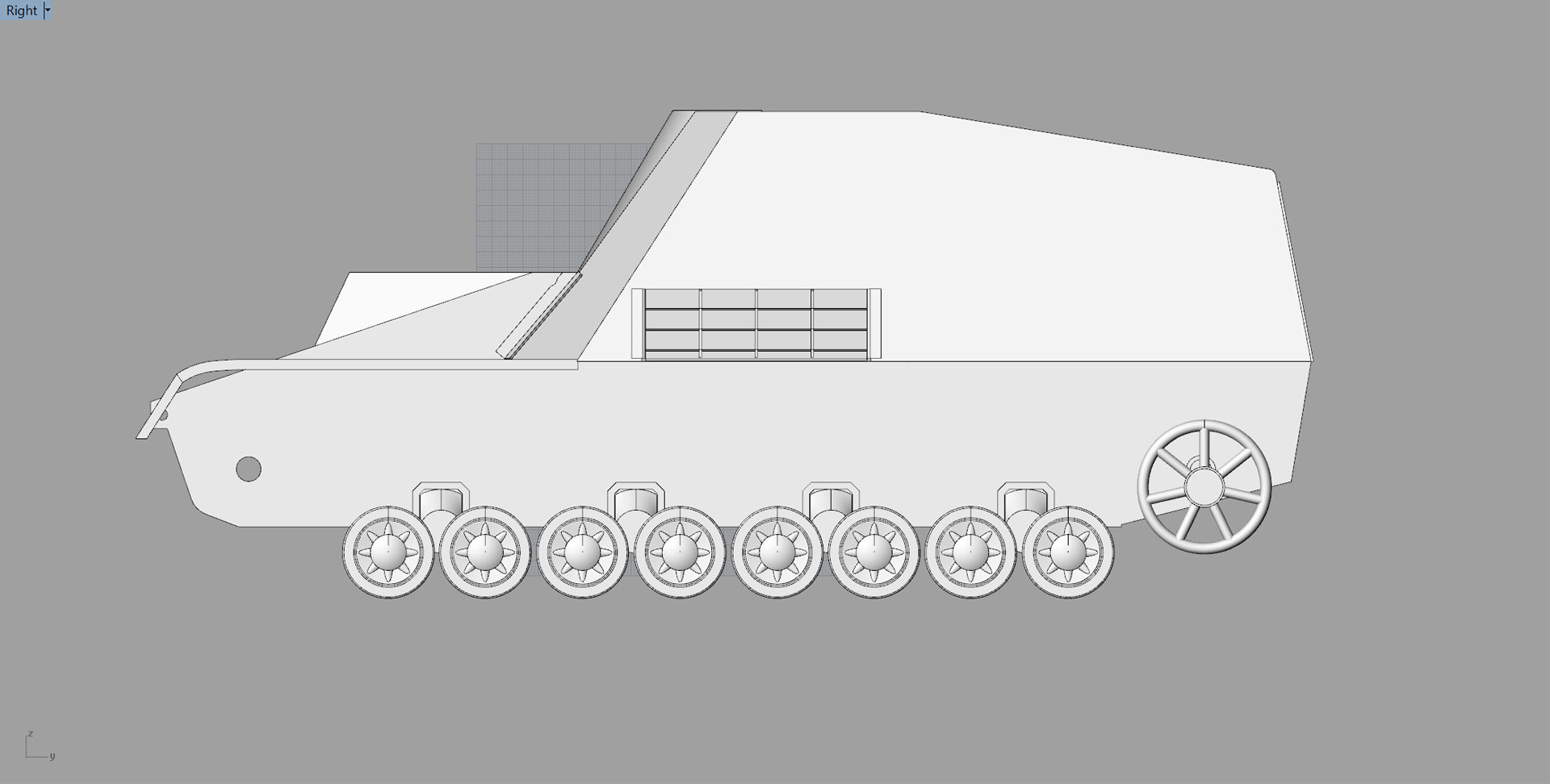 However it was a nice starting point, giving me solid reference for the overall shapes, angles of the armored panels, their size relation to the chassis and road wheel etc...