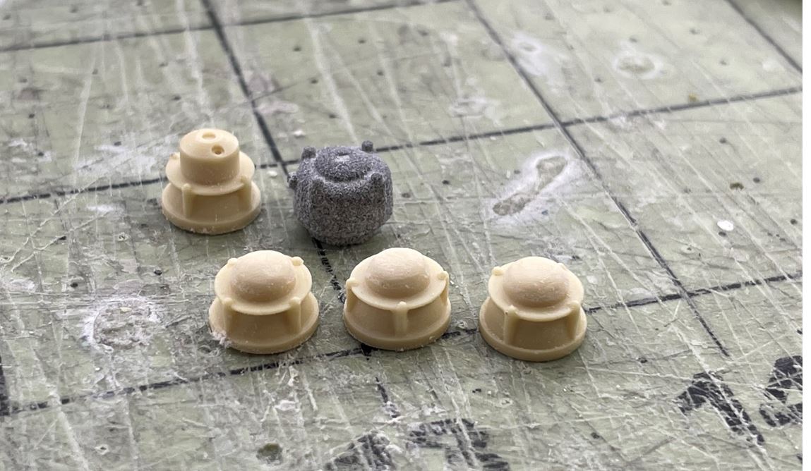 Starting to modify them. Unmodified at the upper left, modified at the bottom, and a Ludwig 3D printed example coming with the roadwheel. Now you understand why i want to use the resin ones.