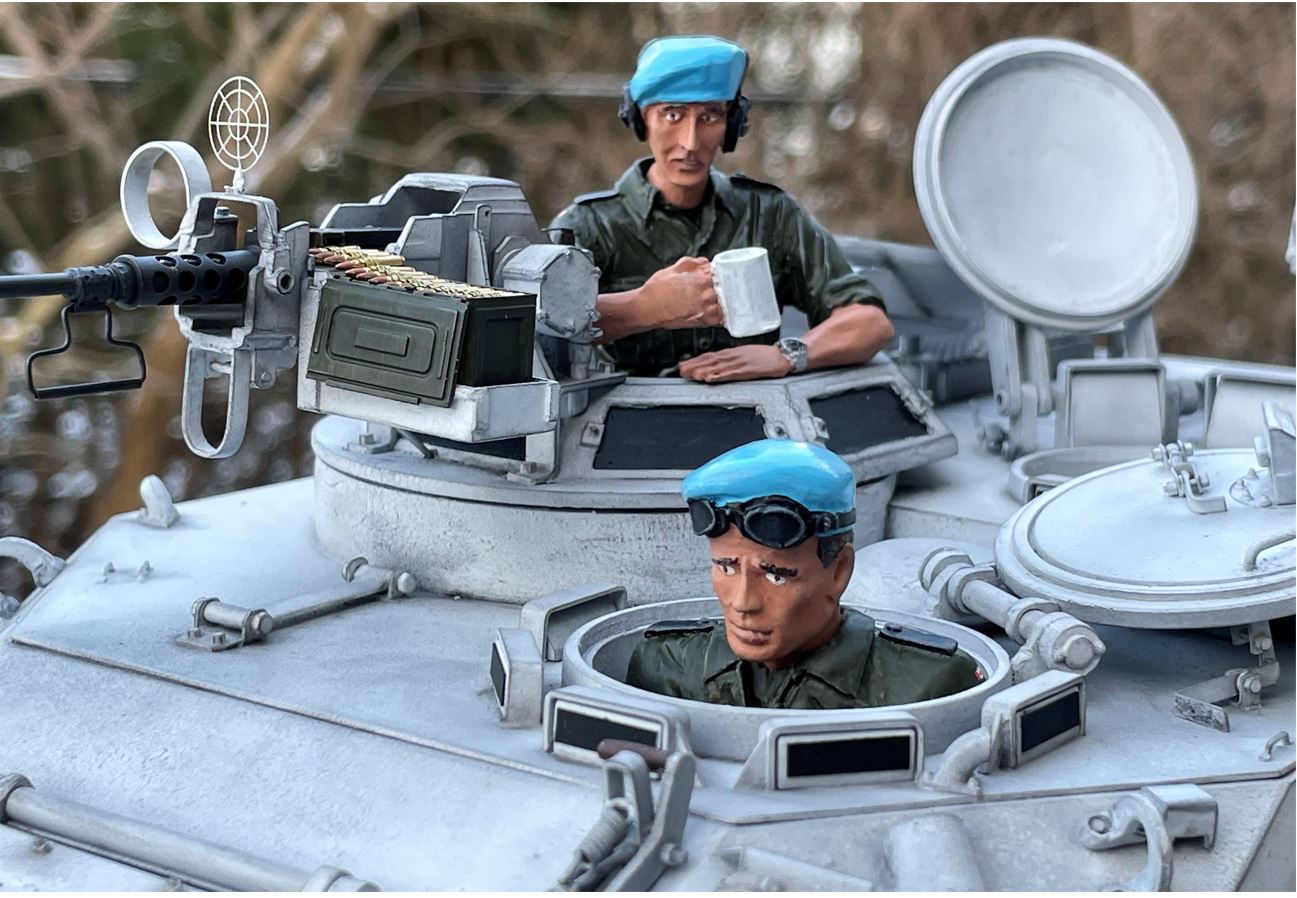Here is the crew of the vehicle. These are the Commonwealth Summer TC and Driver tank crews provided by Dean of DGS. They are WW2 but the uniforms of the 70s were similar and will be painted olive green. The berets will of course be painted UN Sky Blue.