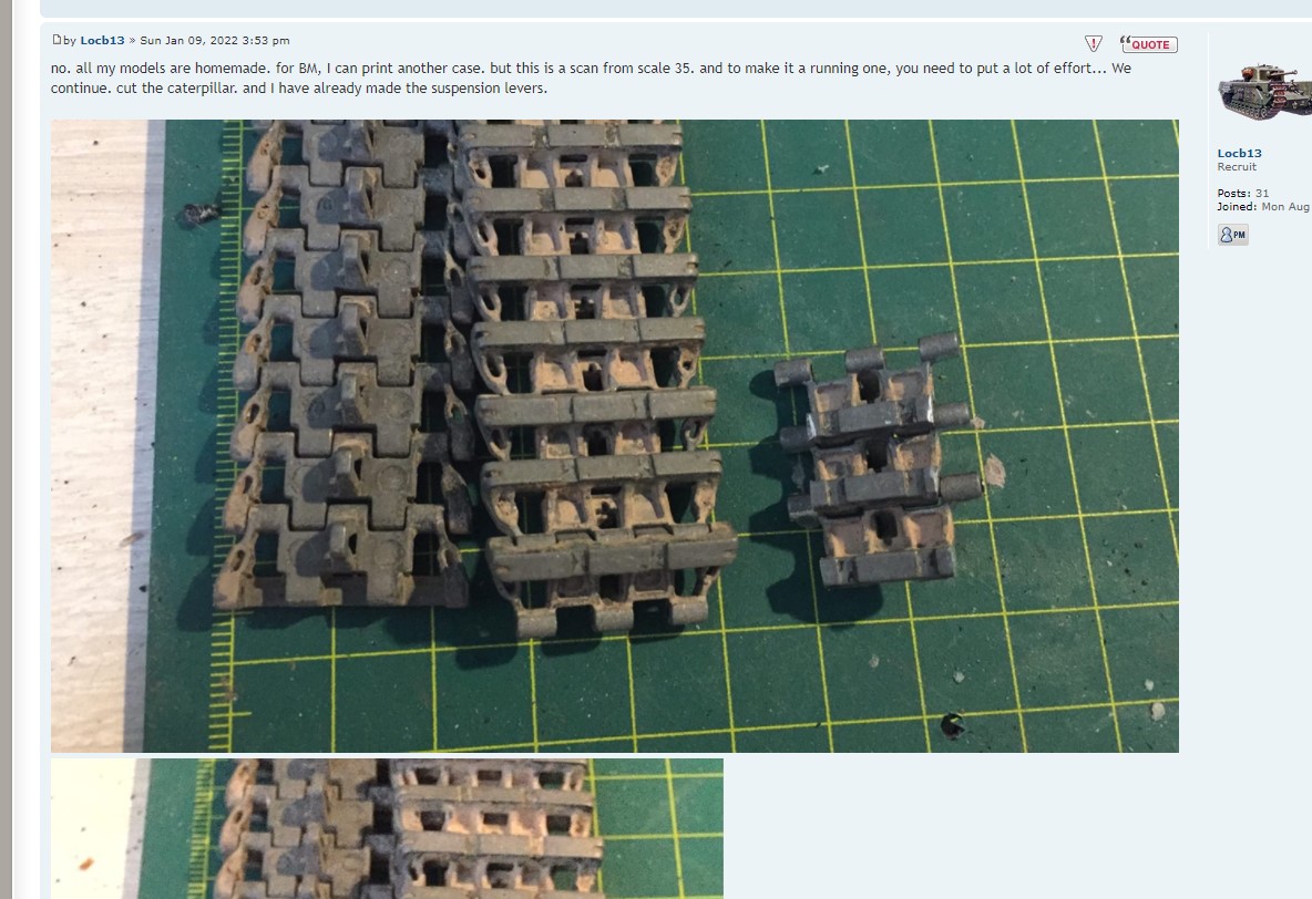 no. all my models are homemade. for BM, I can print another case. but this is a scan from scale 35. and to make it a running one, you need to put a lot of effort... We continue. cut the caterpillar. and I have already made the suspension levers.