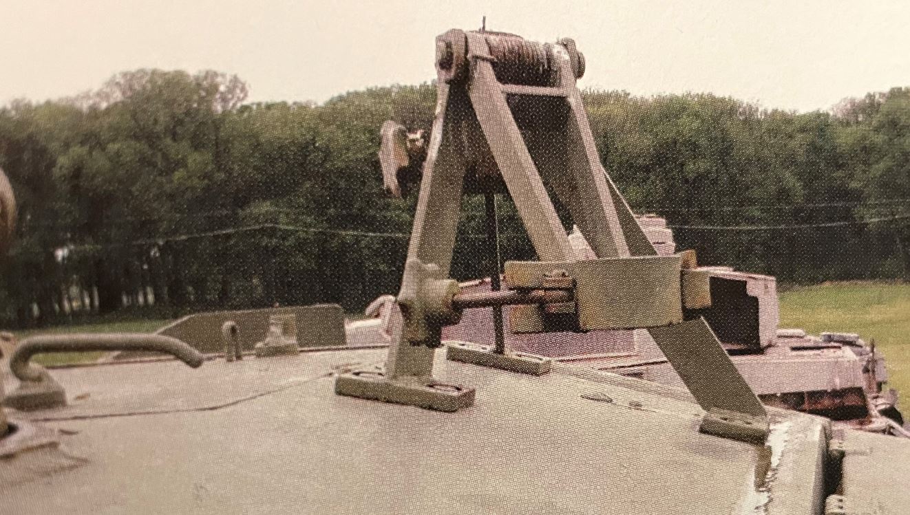 The same book indicates that the front attachment points are for a dozer blade. The few pictures showing dozer blades on Chaffee are mostly prototypes. They do not show the mounting arrangement in order to get confirmation. And the book does not explain what are the square plates at the back either.