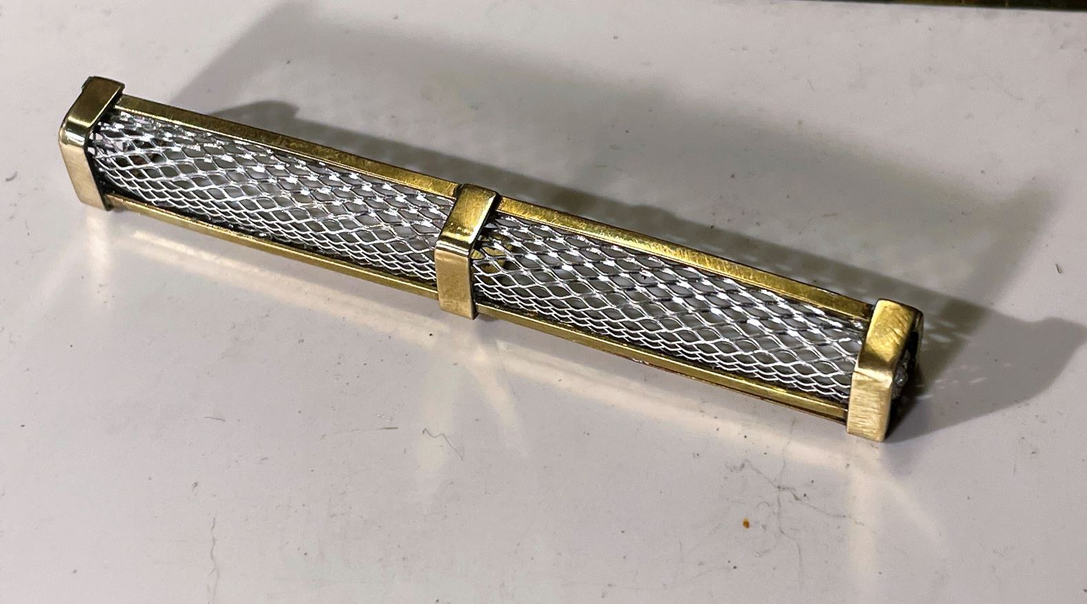 The rear basket is done in brass strips, with aluminum grills of the pattern seen in reference.
