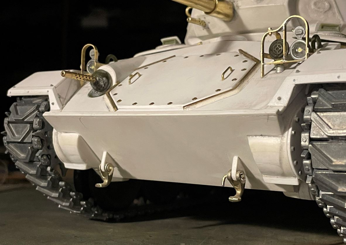 Basket is installed, as well at the square plates below it, tow hook at the bottom, and the shackles that are from the AFV-Model offering for the M-26 Pershing, perfect match.