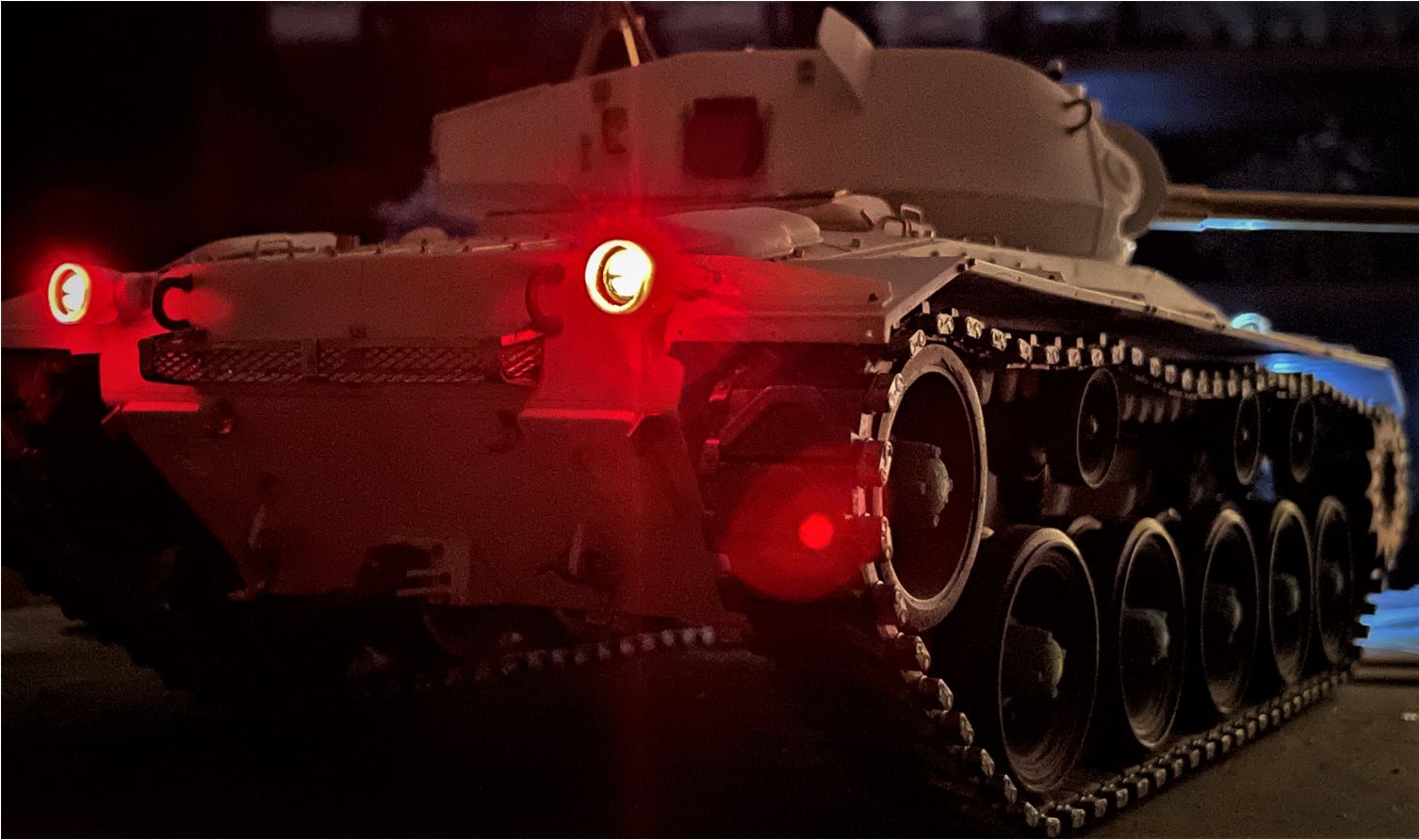 The rear lights are Mato Sherman lights, with the Sherman mount being removed to only keep the round section.