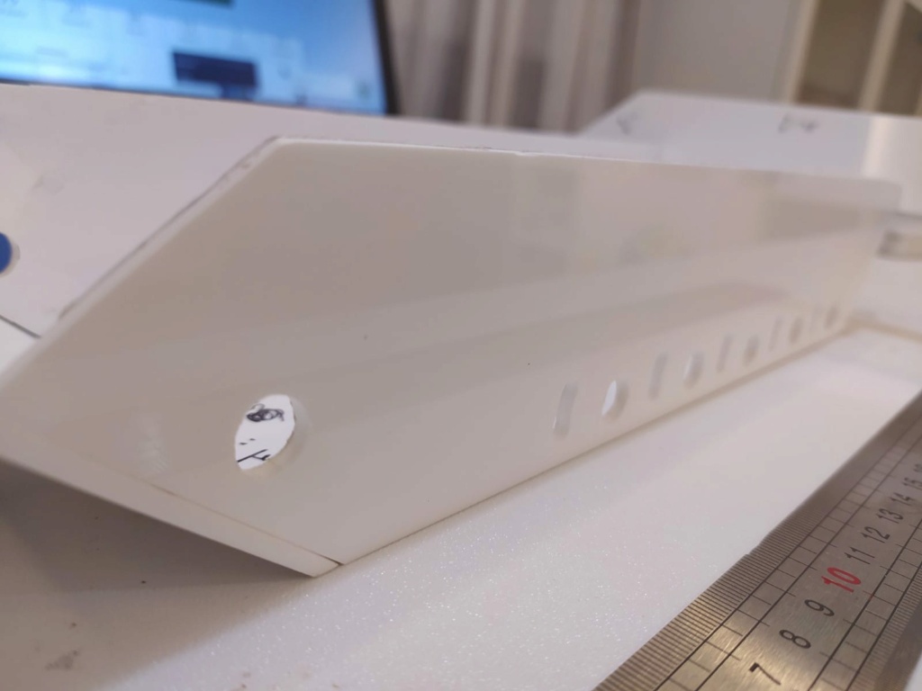 I have redesigned the part and will print it with as much padding as possible, as it is critical and will be subjected to great stress. My idea is, apart from gluing it to the hull, to screw it from the side of the hull to give more consistency to the joint:
