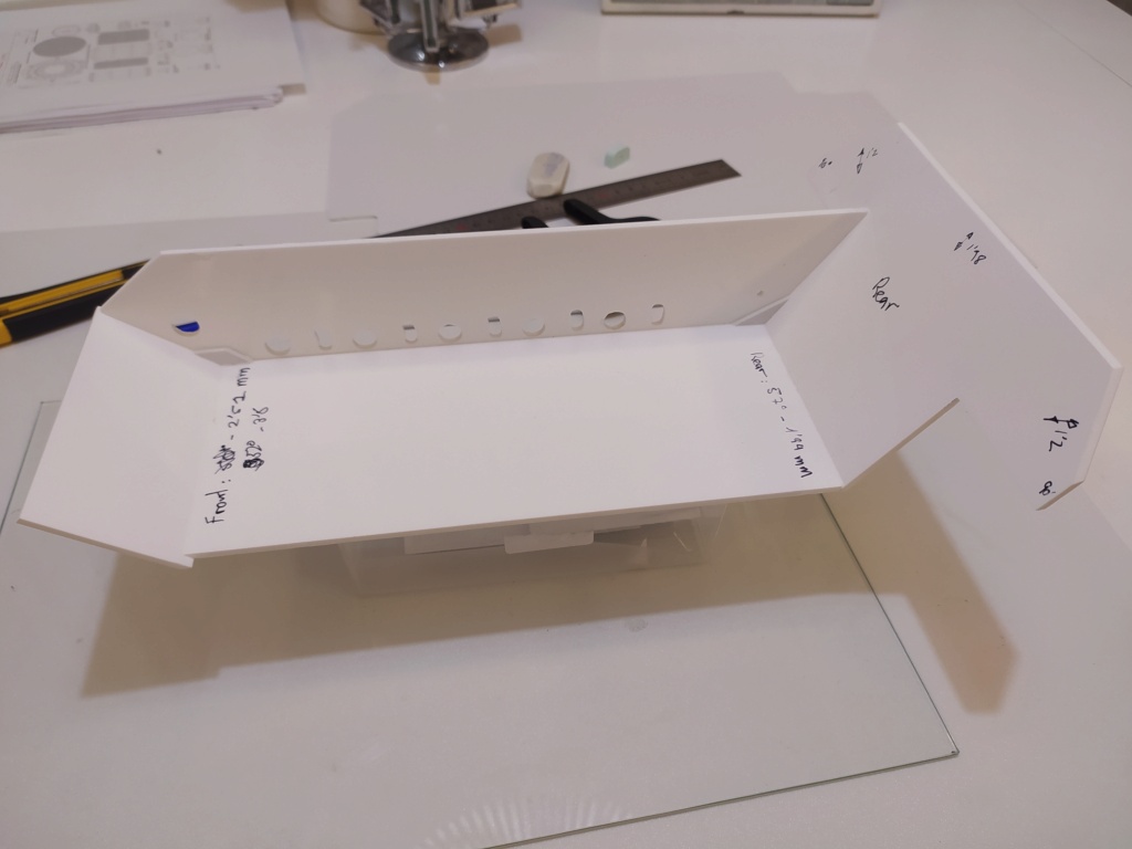 A small but very important step forward to face the final assembly of the hull, I have finally finished the rear plate that required so many bevels (3 in front and 3 behind). Some photos of the assembly without gluing: