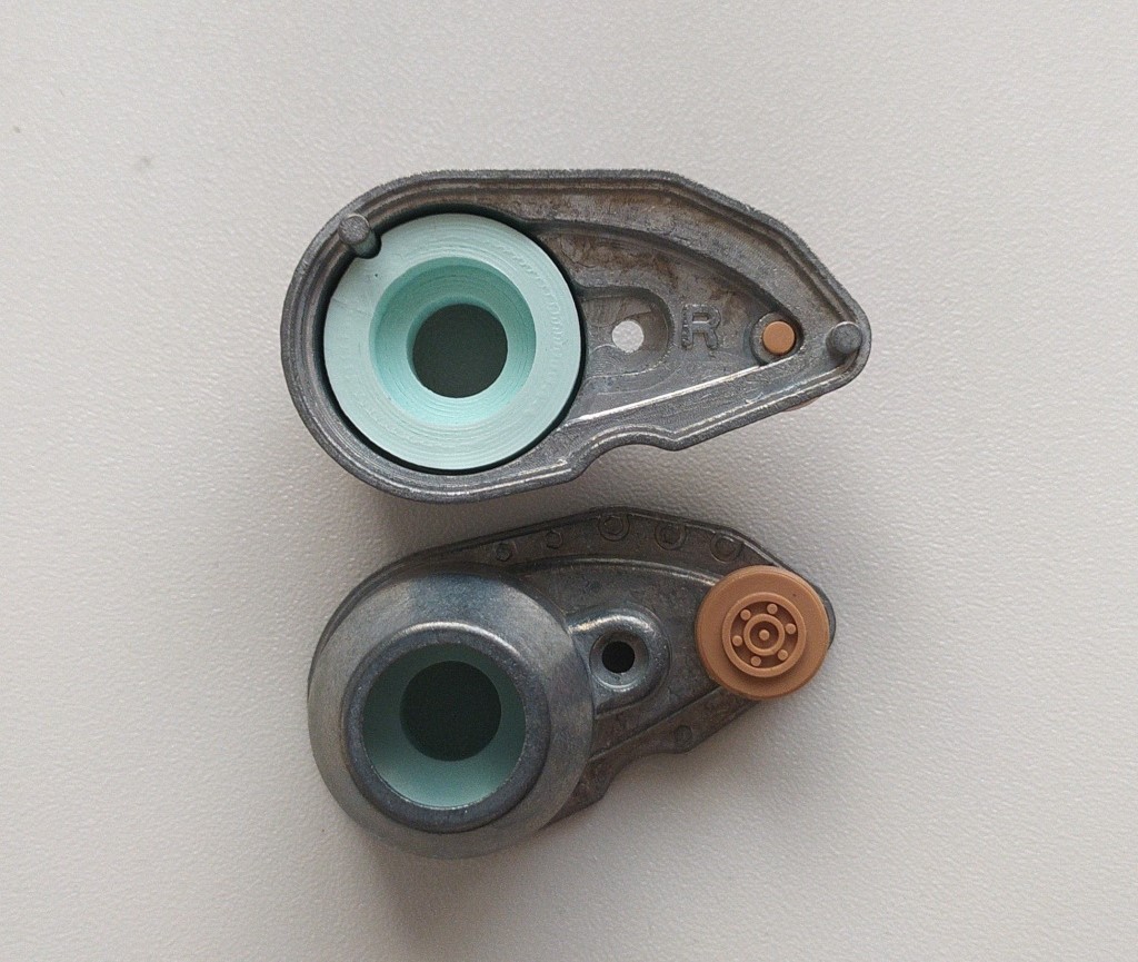 On the other hand, we have suffered the first problem in the design of a part. In the idler wheel arm, wanting to look for the maximum realism, I made the cylinder where it is screwed too thin. In the picture you can see I don't have enough material "to hug" the bolt and it broke down: