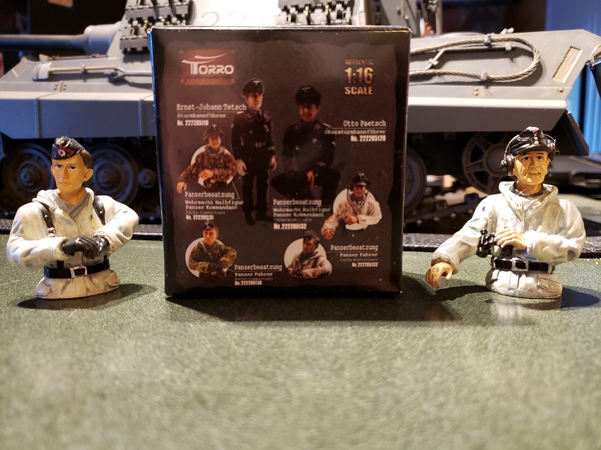 Finally got the Commander and Loader figure in from Torro. Cleaned these guys up and installed them on the Panzer. The Build is truly done now. This Post will be followed up by a Show Off thread and Countertop Video Link. Once again, a couple of feet of snow and sub zero temps preclude doing any tanking outdoors yet. Once some good weather blows in, I will do a video afternoon for several vehicles needing an outdoor run. Until then: