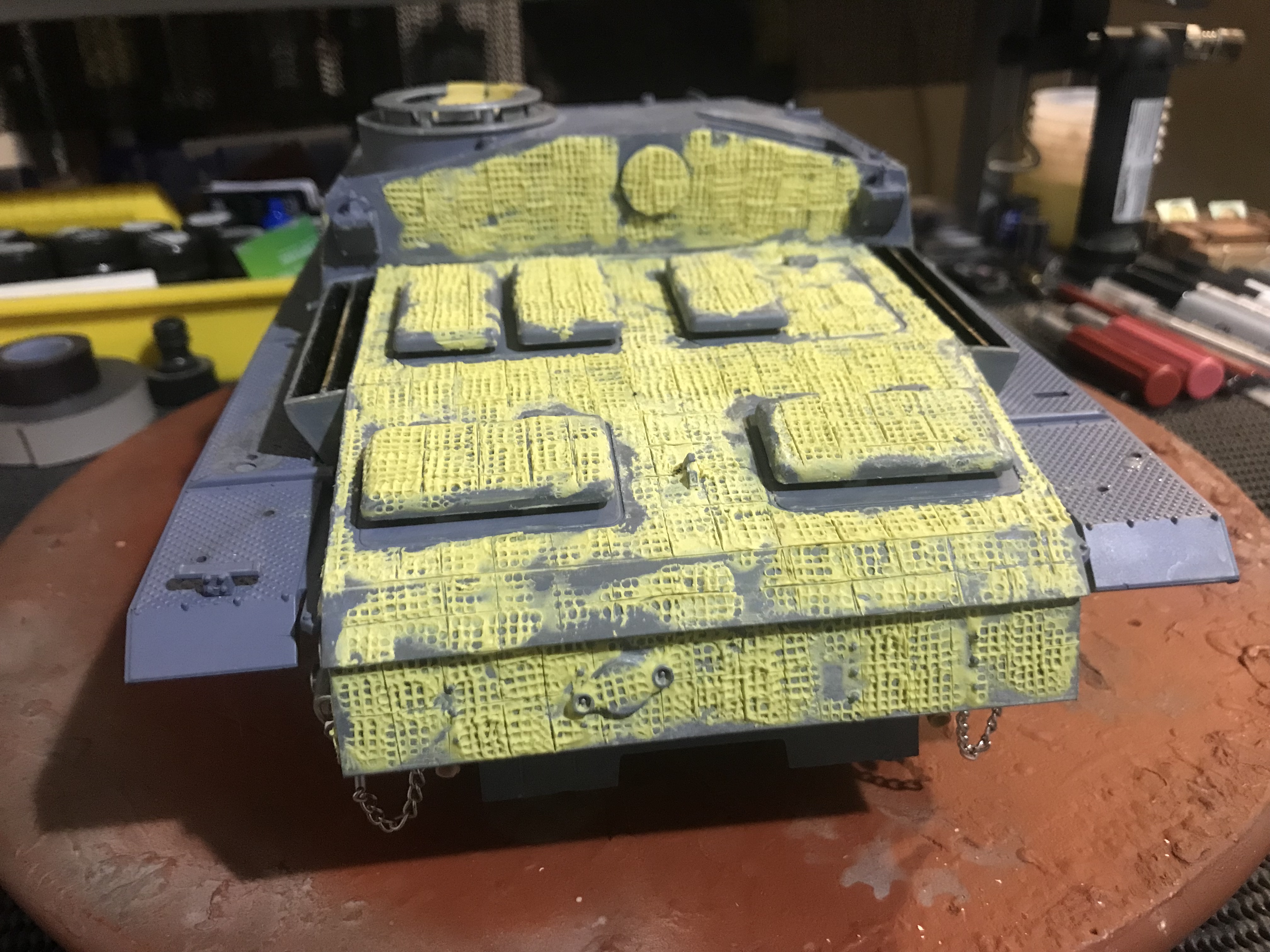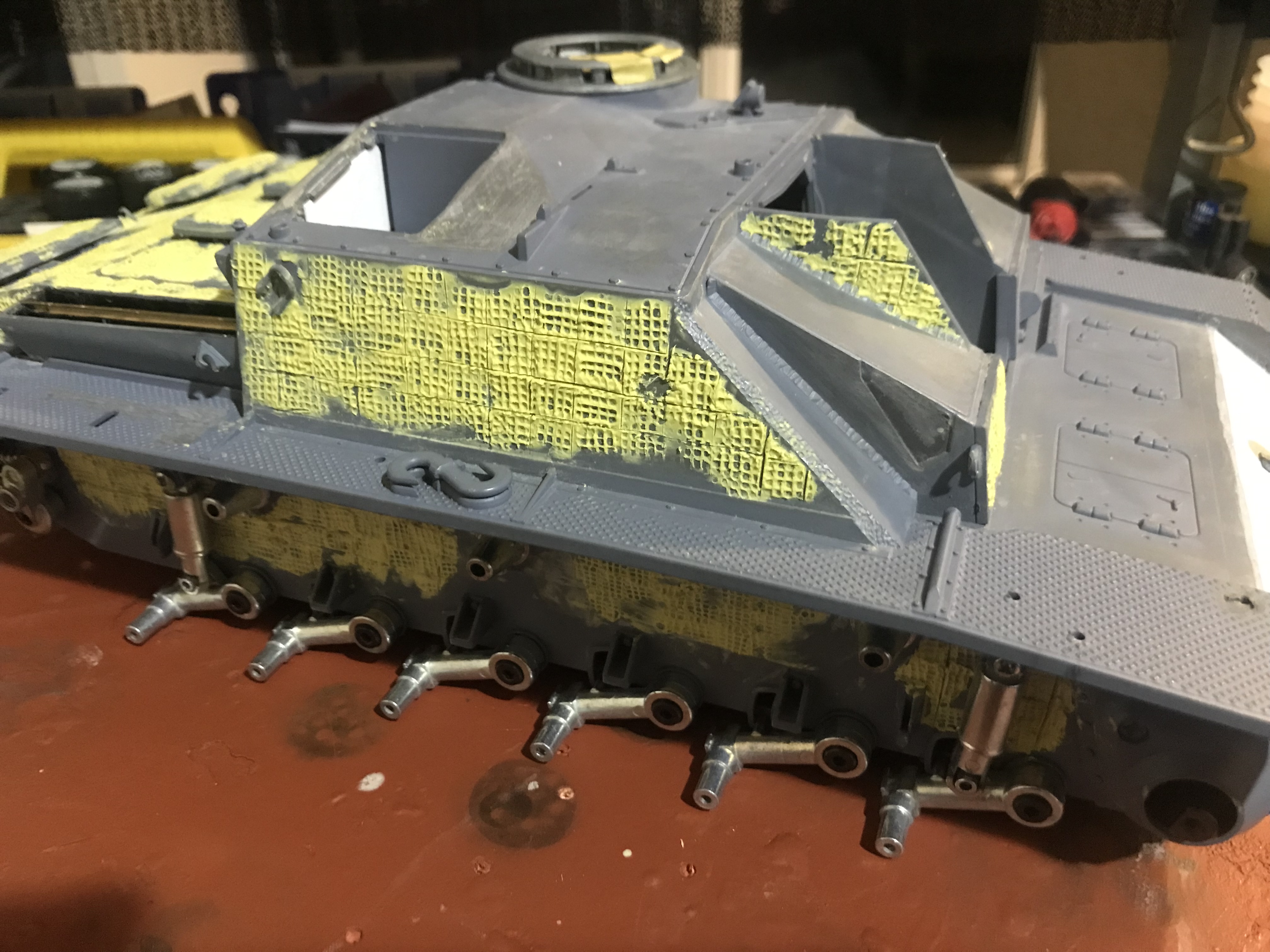 Hoping to get the Zimmerit completed and the hull secured in place this weekend.
