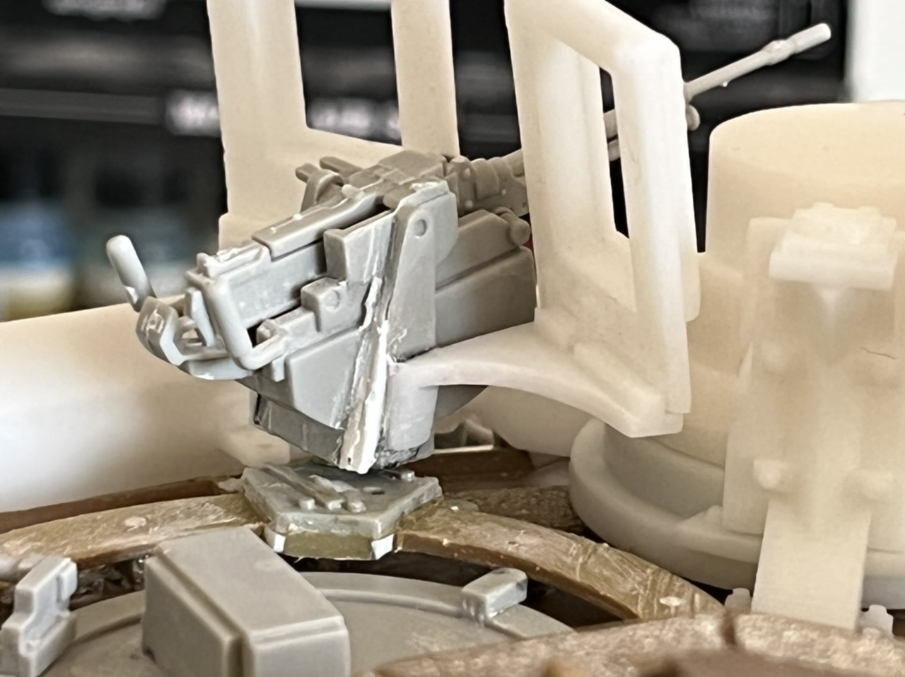 And I mangled the trumpeter loaders machine gun mated to the DKLMRC gun shield l, and a correction to the mounting point on the mg mount horse shoe, if you hatch doesn’t open I think it’s because of this.