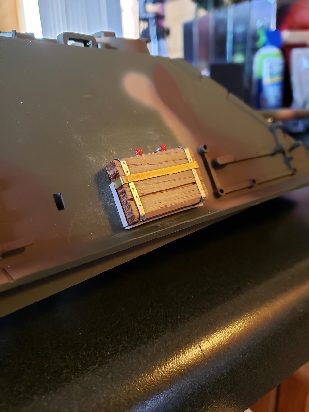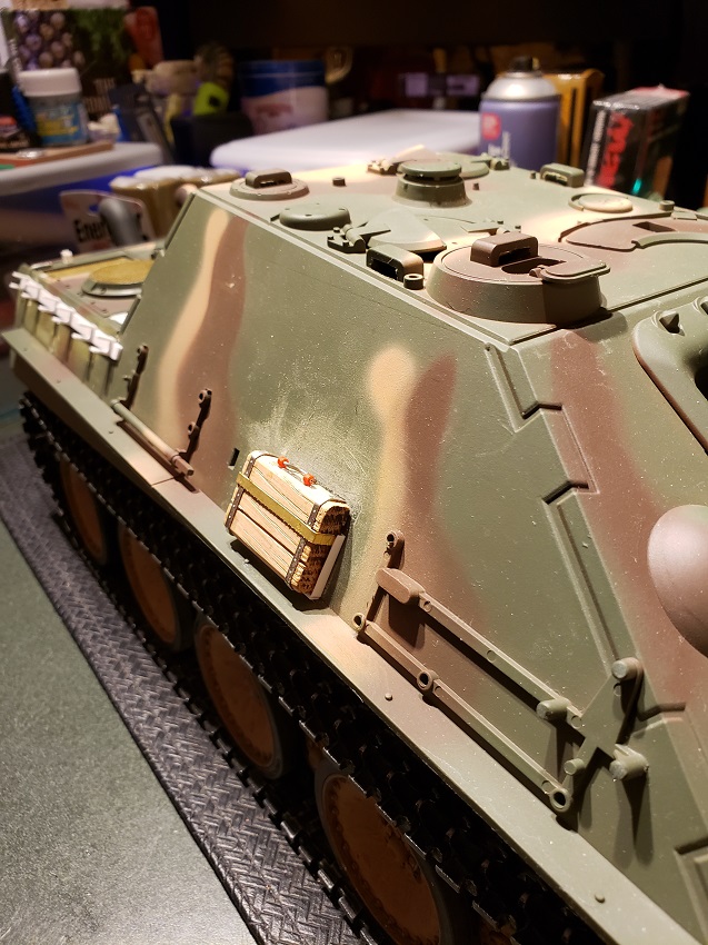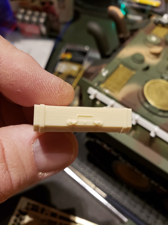 Jack Block built \ wood, brass and styrene. It will be attached with a screw mount similar to the one on the Jagdtiger. For ease of painting. I'll include pics with the next batch.