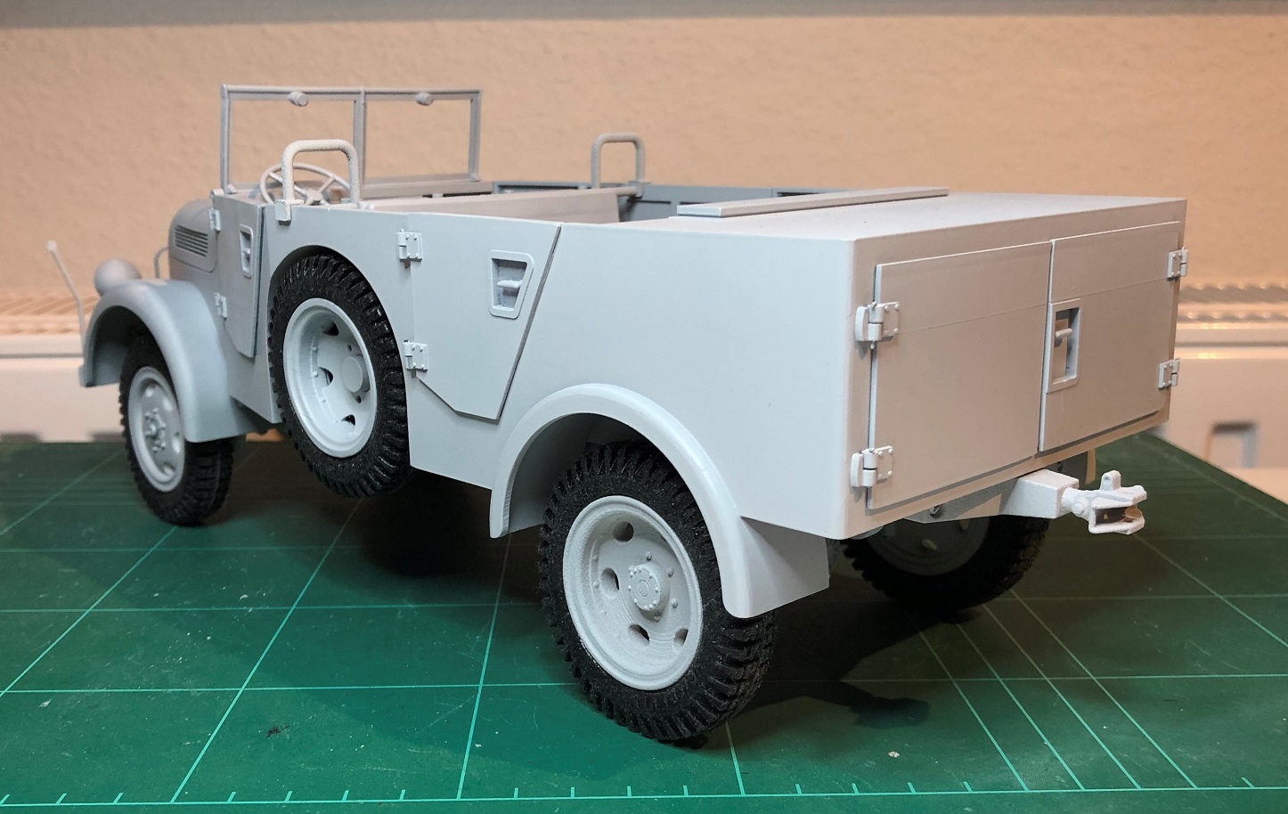 Congratulations on another remarkably interesting and excellent vehicle, Panzerjäger. I am impressed and curious. Did the Steyr 1500A have not taillight(s)? What color will you paint it? Dunkelgelb? Dunkelgrau? Tarnung?