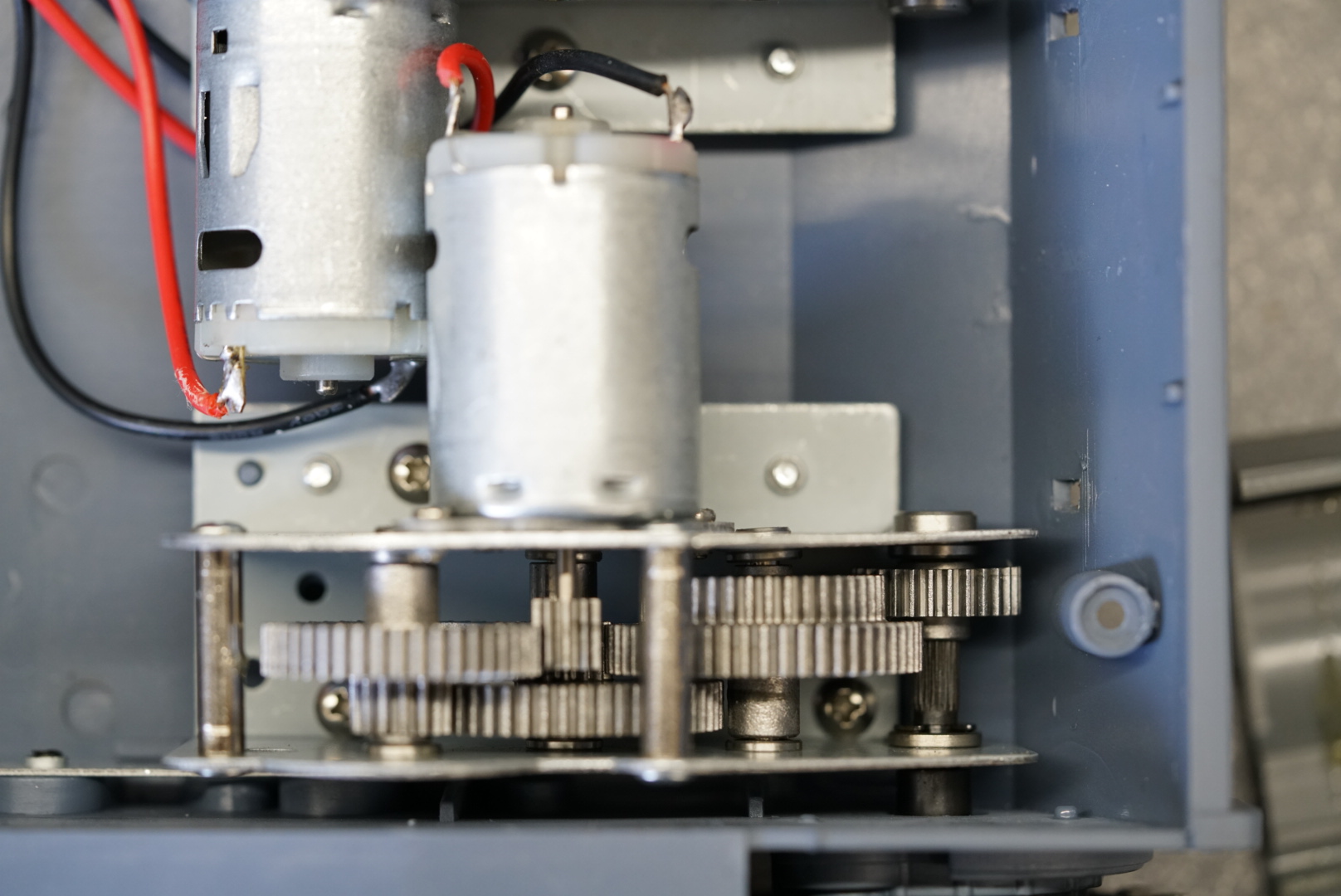 Steel gearbox, has plastic covers which are removed here: