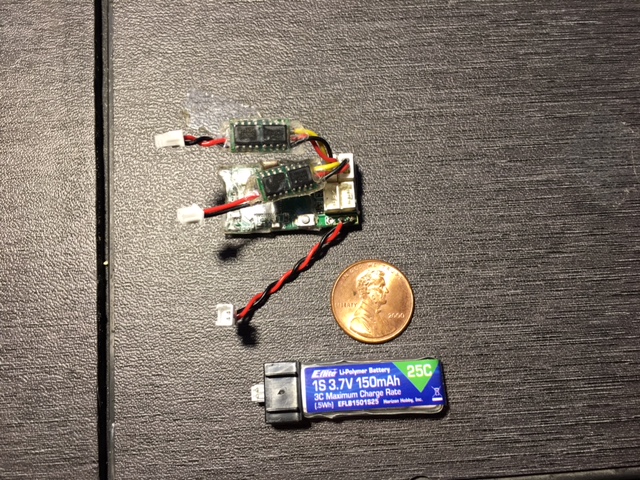 DSMX 5 channel rx with two ESC's all designed to run on 1s cell. ESC's have built in LVC.