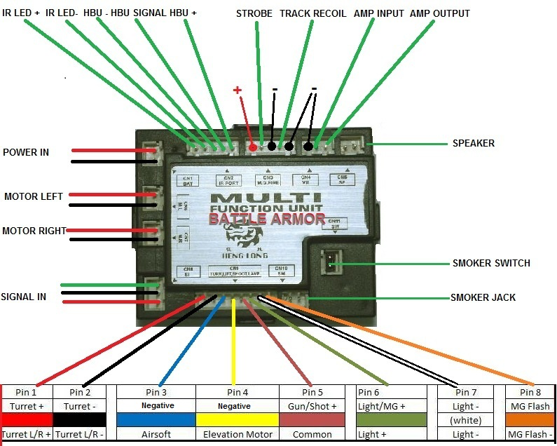 I'm not saying you don't know what you are talking about, but I'm confused why you posed a wiring diagram of a HL 5.3 system? The Taigen v3 has a completely different wiring diagram than the HL 5.3 version you posted. I'm sure the BB diagram is probably correct if this is a HL Sherman converted to Taigen electronics, but I'm not sure what tank he has (whether it is Taigen or a HL Sherman). We know Taigen doesn't have both BB and IR on the same tank. Their tanks are either sold as IR or BB, but not both like the newer HL. The Taigen V3 doesn't have a specific cannon LED slot that is separate from the high intensity slot like the HL v6 or v7 boards. I'm not sure what the voltage is that comes out of the Taigen LED port. I think that is the big question here. If it puts out too much the LED will need to have a resistor on it to limit current. I've seen a lot of posts adding the high intensity to all kinds of boards, but can't find any fitting a standard LED to a Taigen V3.