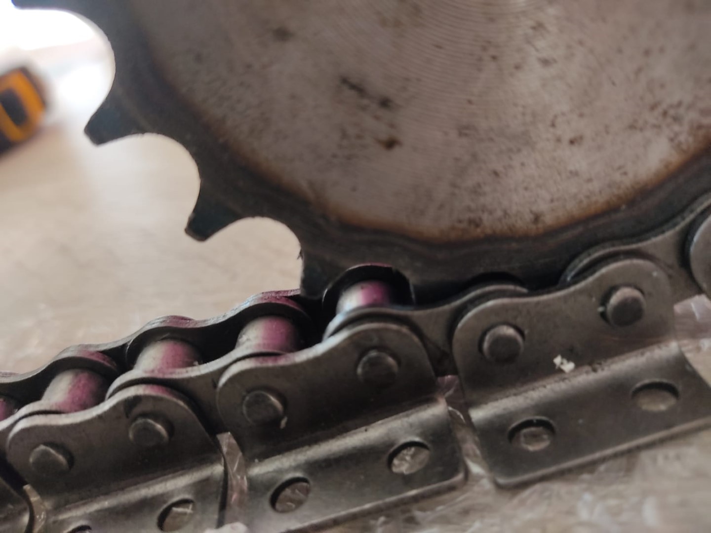 This bring the circumferential speed of the 80 mm drive sprocket to 3,14 x 0,08 x 195 = 48,98 m/s = 176 km/hour
