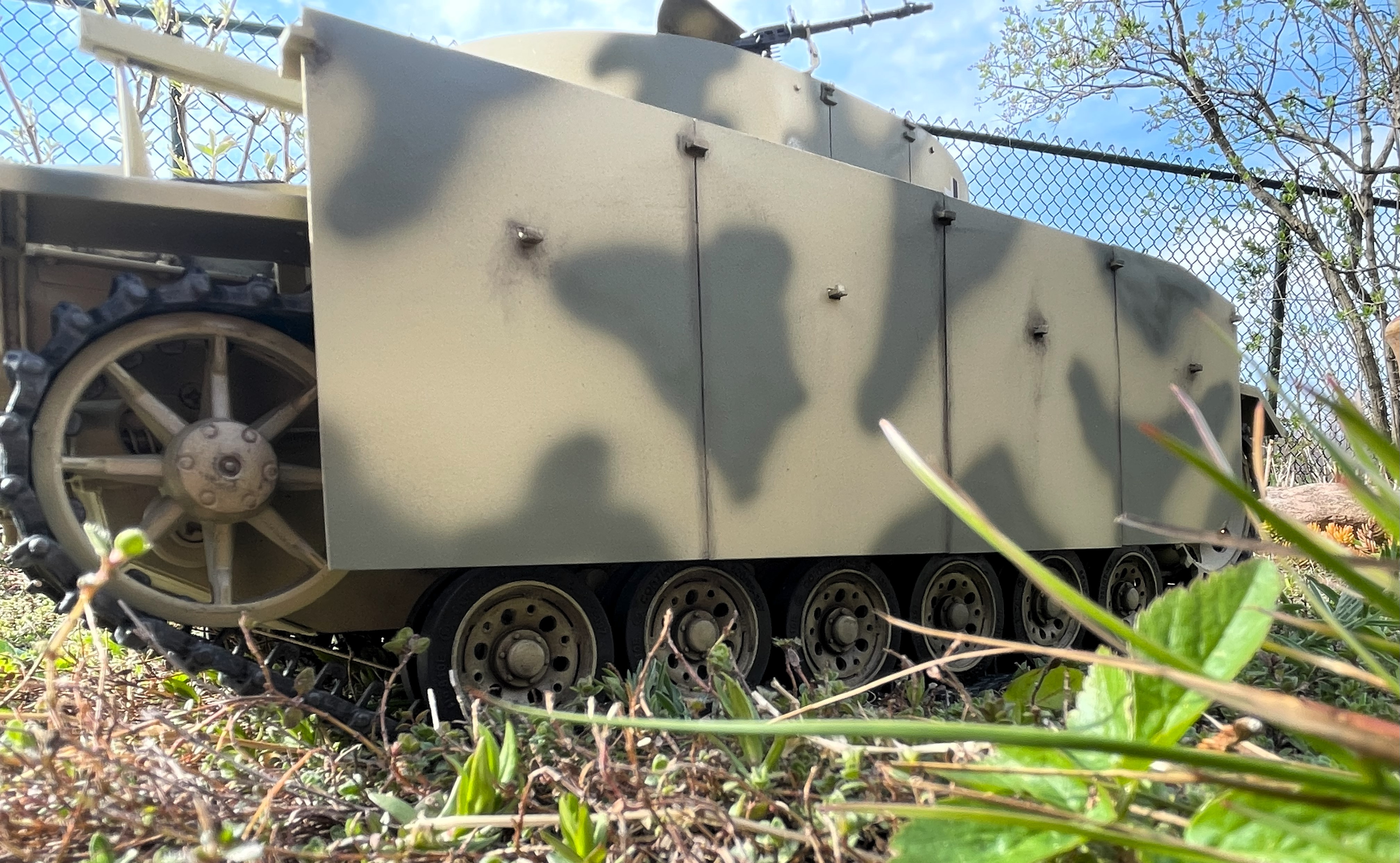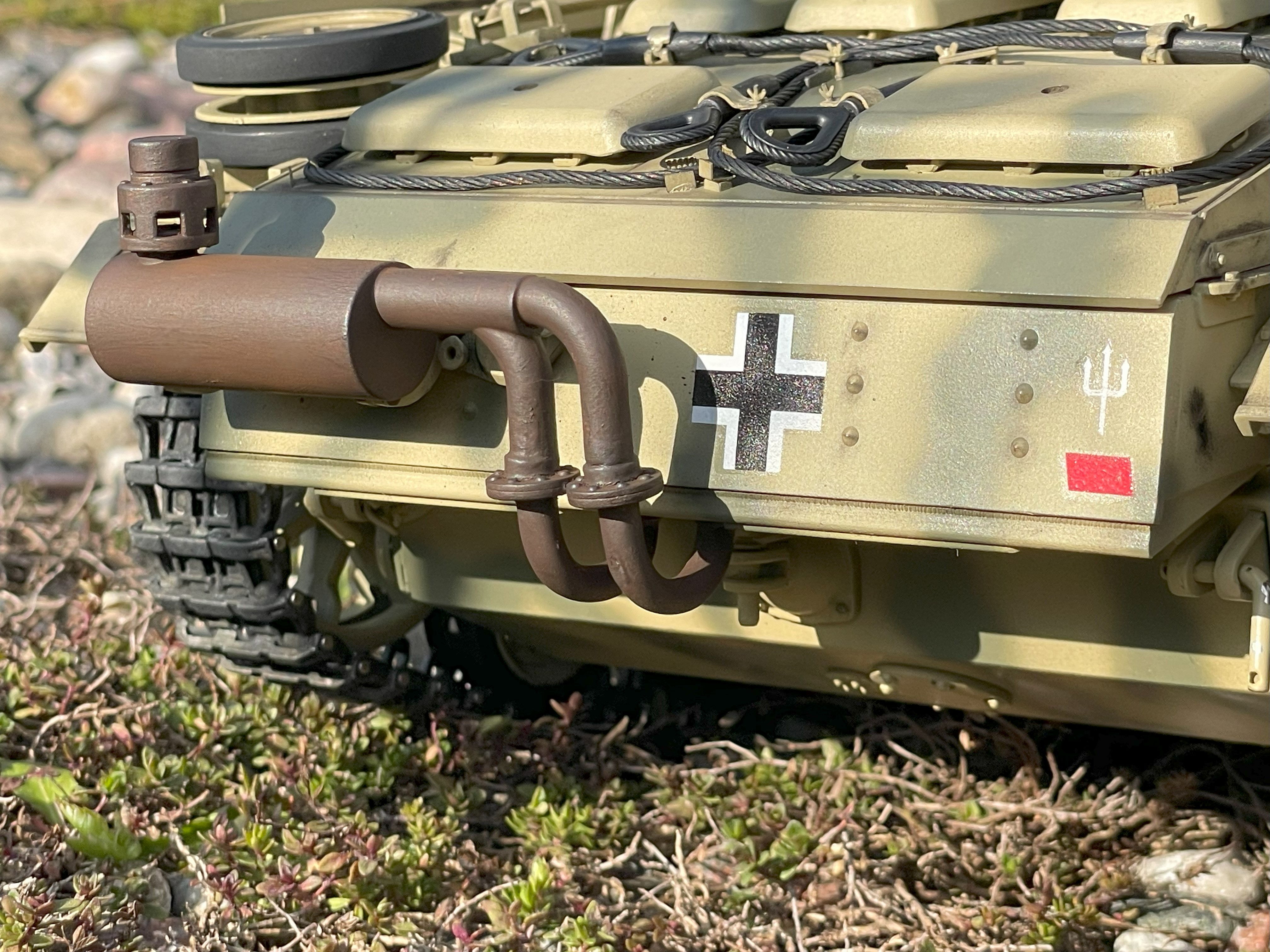 I took some time to repaint my old Heng Long Panzer III ausf L that i used during the build to compare to the Trumpeter kit. This is purely a Heng Long model without any improvements other than gun servo recoil and engine intake grills. At this point, if i want a Panzer III, i will just purchase a Trumpeter kit and use the parts on a Heng Long chassis instead of spending time and more money trying to improve the Heng Long upper hull through scratch building or else. As the Trumpeter kit is a lot more detailed but also more fragile than the Heng Long, it's good to still have tough HL to use in rough terrain. I just wanted to make it more presentable next to my latest creation.