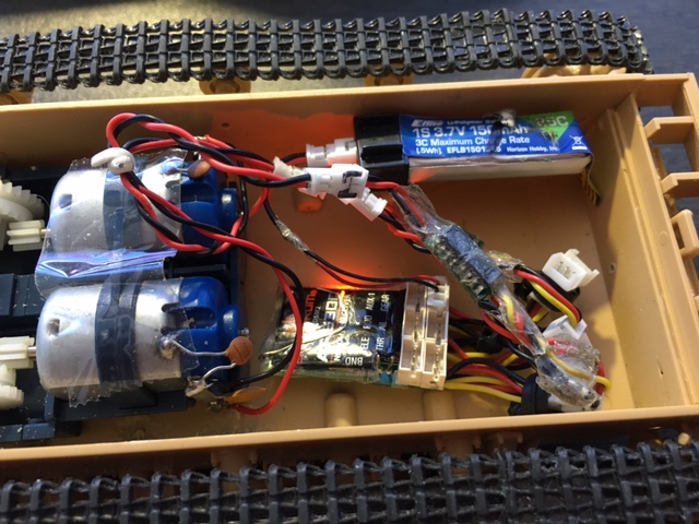 The Tank I show here has a small 6 channel DSM2 rx with external twin UM Esc's. They run on a small 1 cell Li-polymer. As soon as possible I will post info on UM radio gear that I use in small 1/35 models in a new thread in this forum soon.