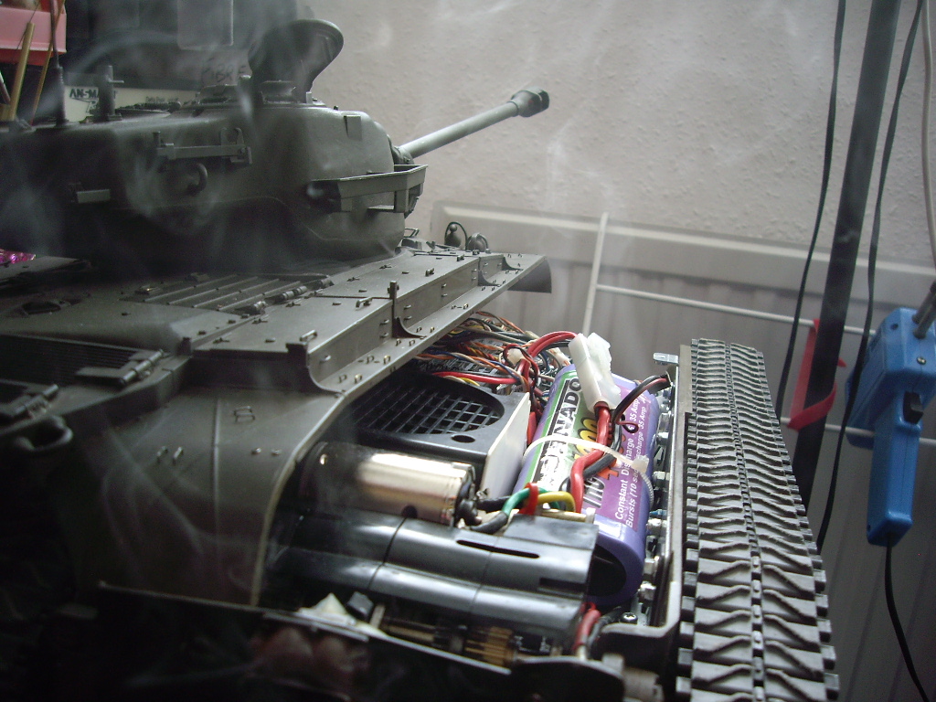 Thats good to hear they can take more voltage. I didn't want to rig it up, only to die on me. I did notice when I tested it the smoke came out like a train funnel. I'm using the fan to get proportional smoke, and to make it jet out like an exhaust. No I can make my battery removable again, lol. :D