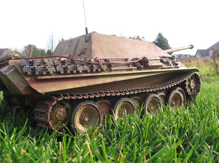 Finished detailing the right side. Added insignia with mud. Kind of going for the last stand hide in the mud abandoned tank look. Used some light wire to tie down the tow cables like it was done in the field in a rush. Scratches, rust, dripping mud...all fun effects.