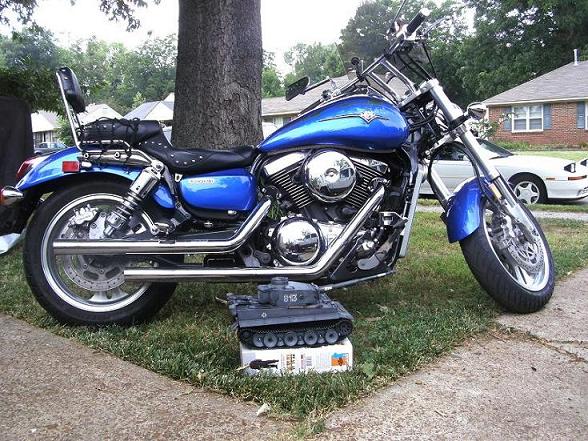 The turbo I bought new in June of 84,it's Bored 810,1100GPZ fuel rail,turbo bored,polished HT-10/16PSI,lots of stuff,As I'm older now and intend to race the turbo next year in the vintage classic my street bike is a 1500 MEAN STREAK DFI,VANCE and HINES SYSTEM,PERFECT OLD MAN BIKE.Hey Brel really would like to see some more pictures of your Jagdpanther and your Tiger,which method did you use?Just realized the picture was a photobucket picture,I really like the JAGDPANTHER but it seems to be painted using a different method than the TIGER, Sax