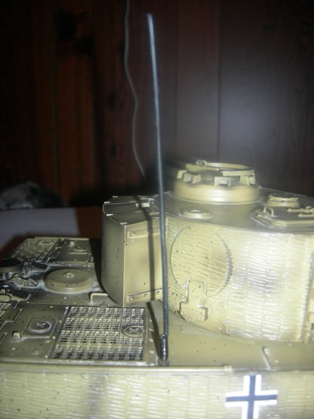 What I did was first I relocated the antenna stand that was placed back on the tank. Then I cut the original down to 125mm (that will be a scala lenght of the antenna). I then took a thin electrical wire and pulled out the copper and used the insualation for covering the antenna.