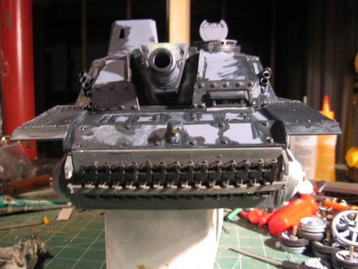 want extra protection, add some track to hull front. In this case, copper wire and epoxy secure Asiatam PIII track links to through holes in bronze hull plate. PITA. looks good though...