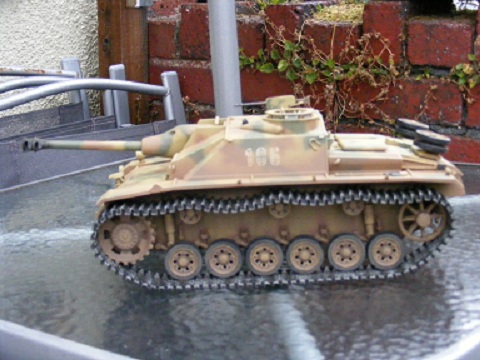 At long long last the Stug nears completion. Here she is in her new livery with slightly "dirty" feet :haha:. The old girl has a new metal chassie, metal wheels and wider Osterfront tracks for that dragester look :wtf: . just a few bits to go back on and she's done. As always comments and observations welcome. All the best for now