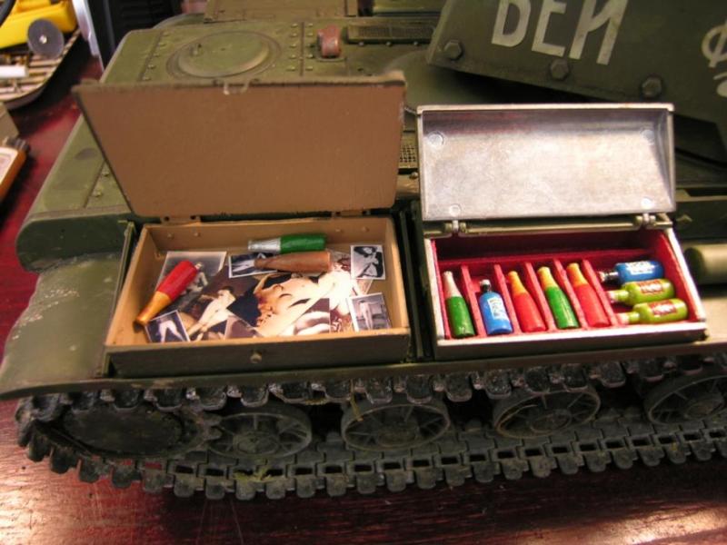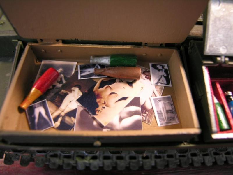 I have a friend on my board that collects "vintage" pics. Thankfully he scanned, shrunk and printed them off for me. I wanted a unique tank. Something that looked historic on the outside with some fun on the inside. Hopefully I'll get around to painting the lids and the gun sometime in the future.