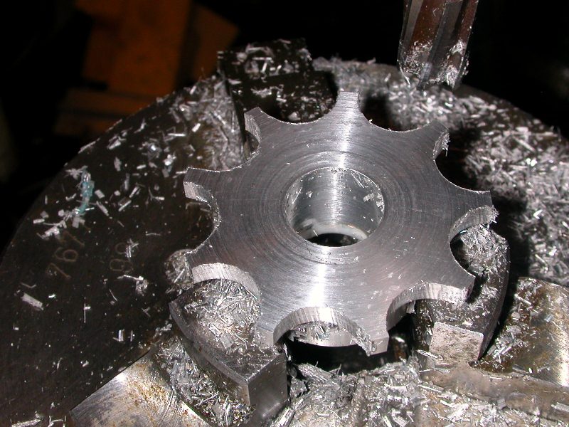 Before we got there we had to somehow hold the stripped battery drill motor so I made an aluminium cradle whilst Frank made the pulleys to go onto the end of the drill motor.We assemble it all together, applied the power and NOTHING......AAARRRGGGGHHHH. nothing but a slipping belt !!. Plan 74a next......W decided to try use a cog and chain method but after researching ebay we couldn't locate cogs that were small enough.....Plan 75a....Only way forward was to make our own cogs and that was something we had never done...However with some aluminium bar, some very precise measurments and some trial and error we are now quite proud of our cogs. Next problem was how to get the chain to exactly the right tension so we drilled elongelated holes in the base plates so that we could move the motor mounts backwards and forwards.We had mounted all this onto some MDF boarding but found this far too flexible so then made aluminium base plate but still too much movement so then another strip down and plenty of wood packing underneath all the boarding. Finally we assembled it all again and connected the electrics and the battery......SUCCESS...it moved beautifully forwards and backwood and sounded great with the metal treads on a metal table.....The electrics need a lot of work as can be seen in the photo but we are going to use a servo for applying power to the motor but we need to find some electric device that will reverse the + and - so that the motors will go into reverse. Any ideas anyone