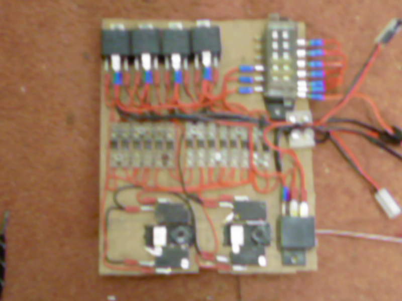 Here is a (slightly blurry) picture of the TRI-Pact speed controller that I built for my 1/8th M26. The relay on it's own is to power my homemade smoker. Obviously the Tri-pact controller was designed by someone else. I just copied it from the RC tank combat website. It uses 4 X 40 amp 5 terminal relays, some microswithches and some diodes. I found the exact diodes on Ebay.