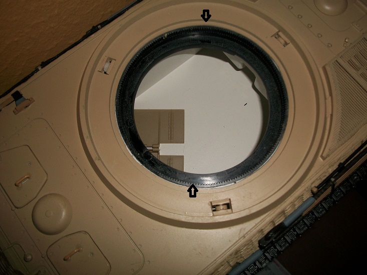 Their may be a better way, the ring gear modification which allows the turret to rotate 360 and be removed simply by lifing it off the lower hull has been around for a while. Look at the pictures below.