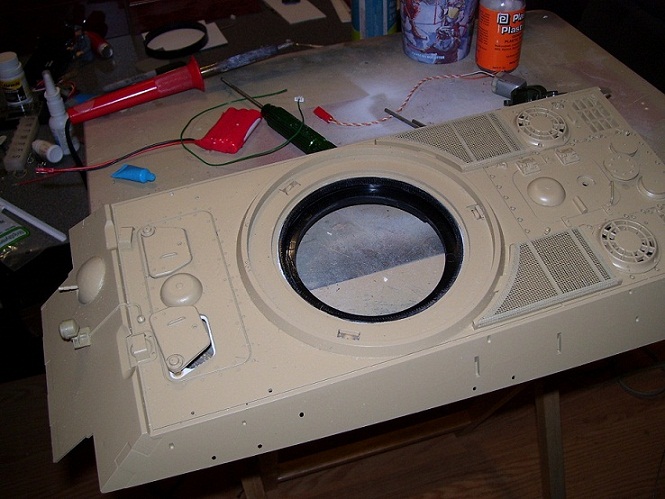 looking for some ideas/advice from those of you who are no doubt much cleverer than I. Heres what I am trying to do, I have built and converted a stock Tamiya Tiger 1 into the Late version and after much deliberation I decided to use it on the Hatchette build your own tiger upper hull, the turret ring hole in the upper hull had to be made considerably larger to accomodate the larger Tamiya turret ring. This was achieved with my dremel and the turret now sits in the hole. I then began thinking of a way to improve on the Tamiya rotation. Would it be possible to use some sort of large bearing sitting in the aperture? if so what type of bearing would i need? how would i modify the original tamiya turret to sit in this bearing, presumabely i would need something to mate up with it and allow it to spin freely.