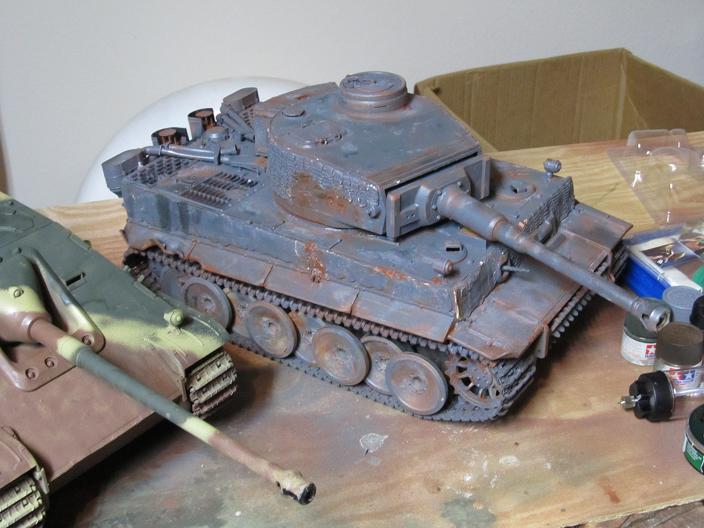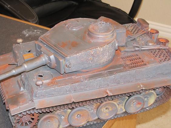 TC, Both my Tiger and Jagdpanther were stripped and repainted. The Tiger was my first Tank and my first time painting with the airbrush. I had the benefit of a teacher and a step by step procedure. I have noticed some talk about using salt, on the deck of my Tiger I used baking soda, the finish is ruff like painted steel. But because baking soda is a really fine grain the effect is much more even.