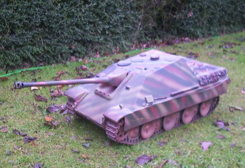 ). I seems I've matured into a big kid with larger toys. I've somehow landed myself an old mark-1-tank 1/8 Jagdapnther in need of alot of tlc. Its mid rebuild and will be a big improvement (I hope)on the original basic (very) model which is now discontinued. Its been substantially more indepth than I'd bargained for as it wasn't in the best of health. I will be posting photos of the various stages up to date. Unfortunately it seems 1/8 is a tricky scale as there is little in the way of part/ accessories available so any help there would be appreciated. Also there is precious little in the way of accurate reference material on late variants of the jagdapnther (which this has been converted to). So any advice on insignia, numbers, markings, paint etc will be welcome went it comes to the painting stages. I believe several wss units had a handful of JP's so I'm thinking of possibly recreating one those.
